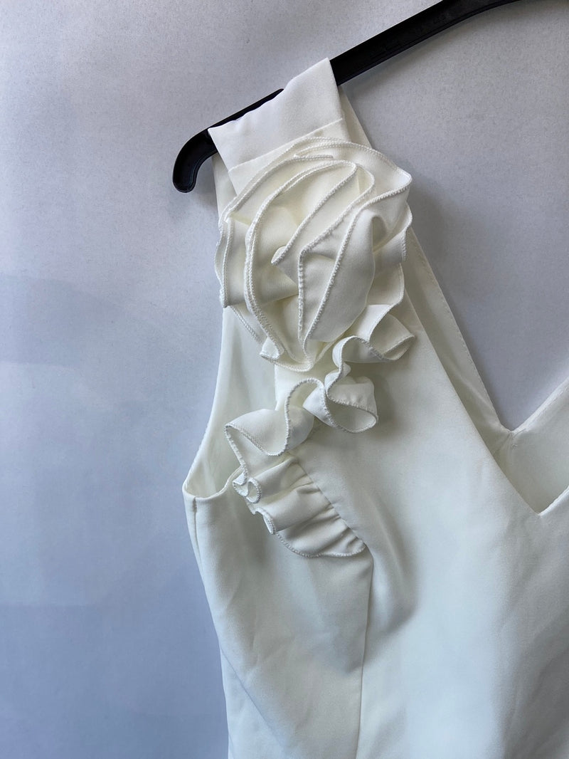 NUEVO CON ETIQUETA. Top blanco semielastico y estructurado. Cremallera lateral. De sisa a sisa 43 cm largo 48 cm