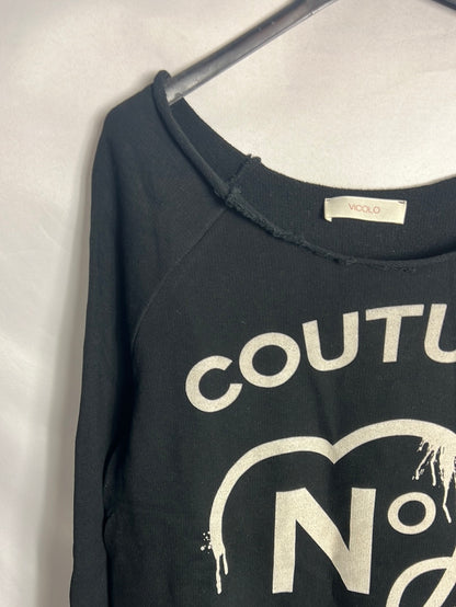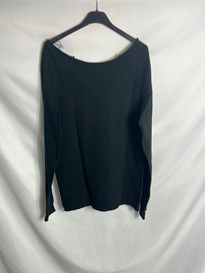 sudadera fina negra con estampado y cuello alto. Largo 58cm