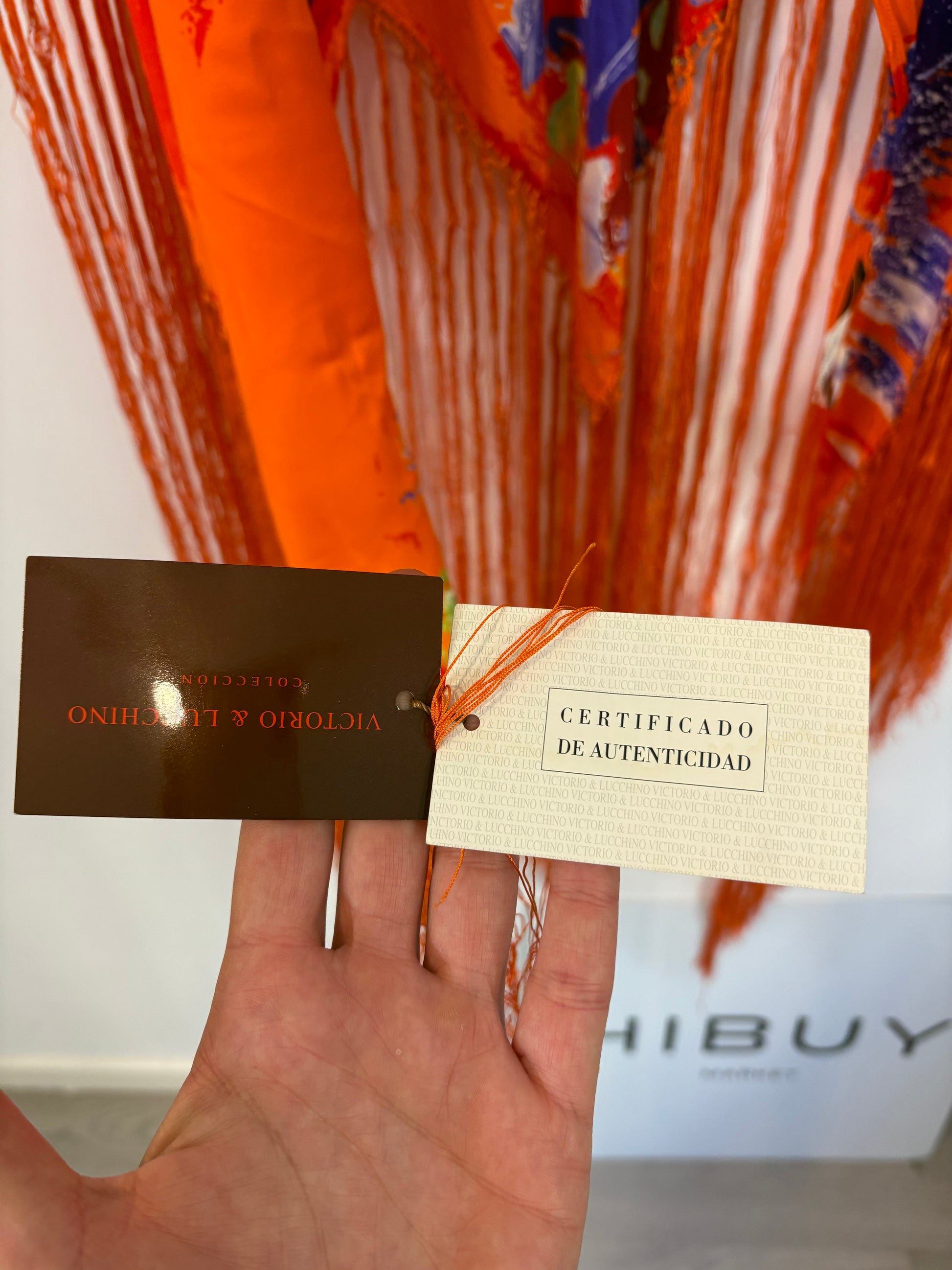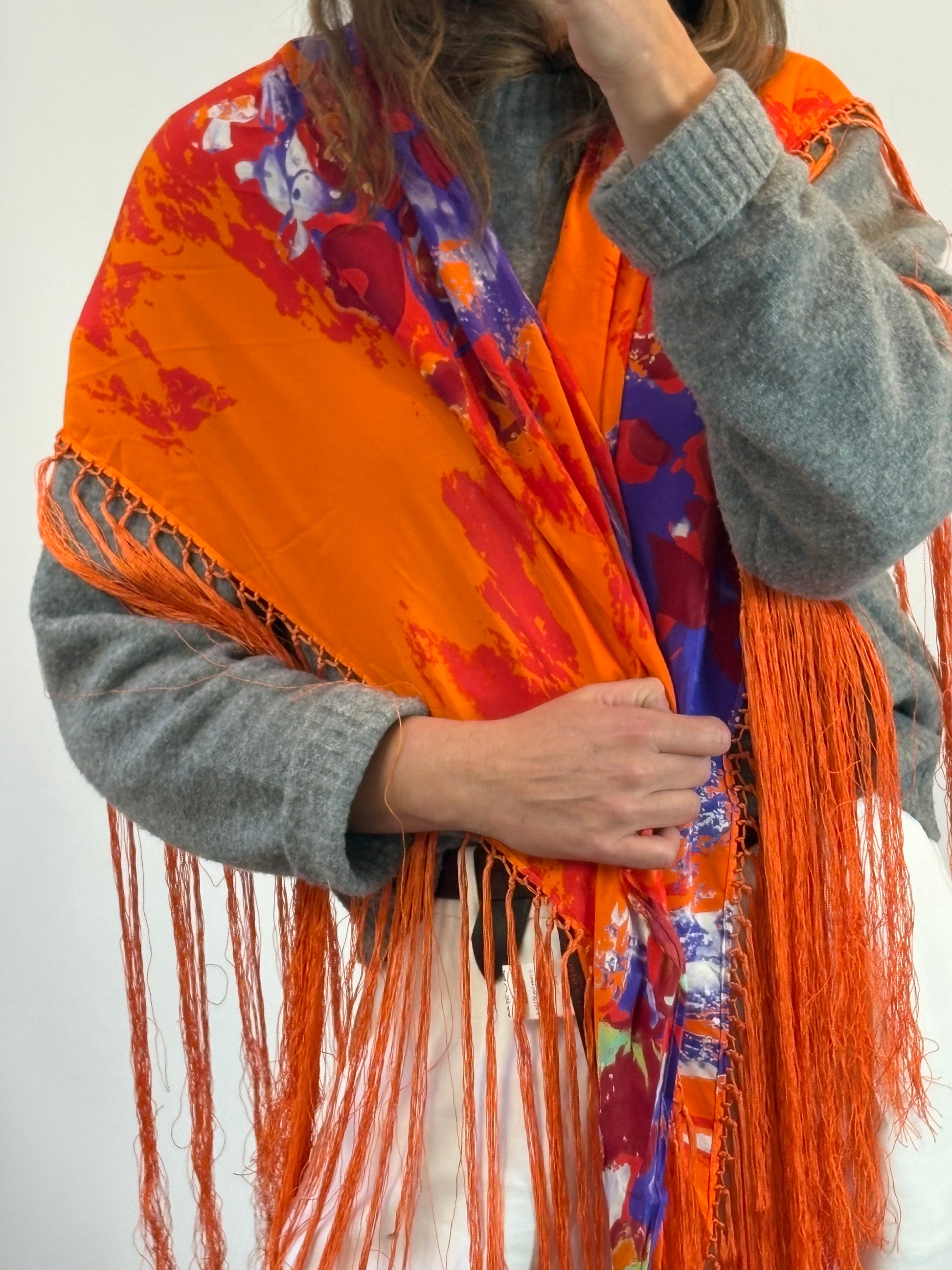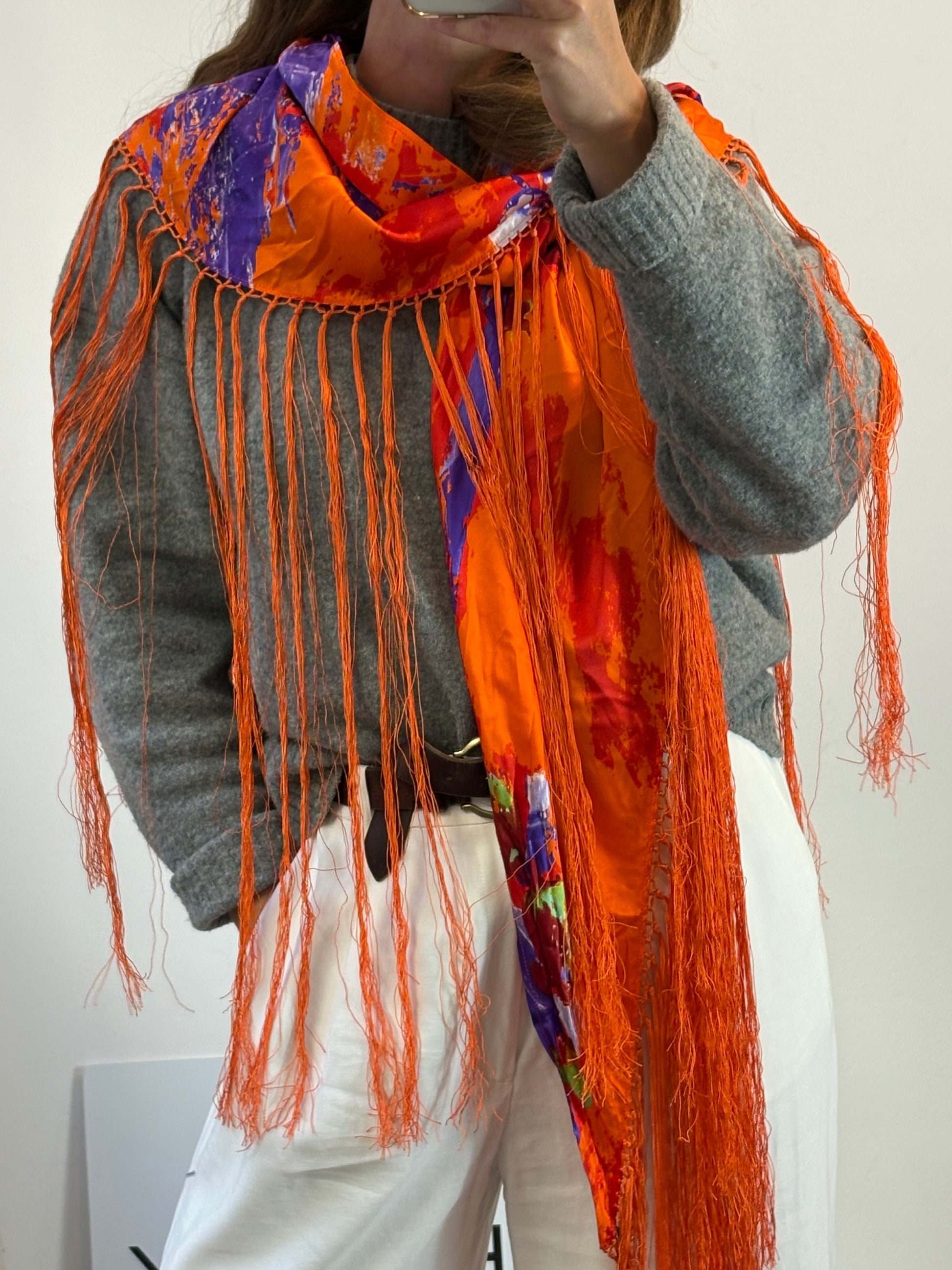 VICTORIO & LUCCHINO. Pañuelo seda flecos