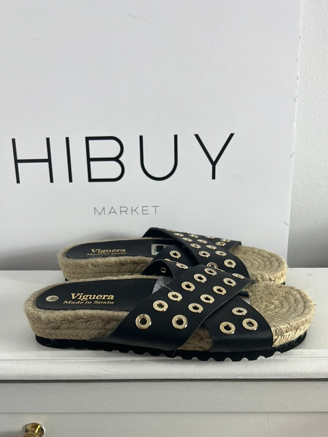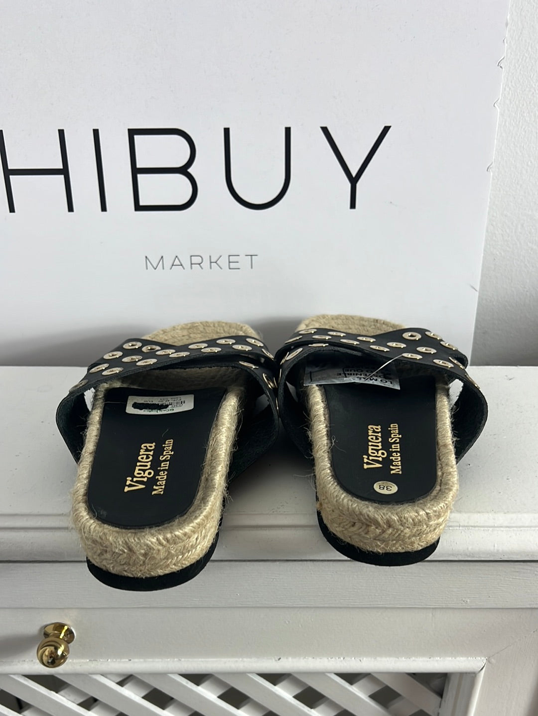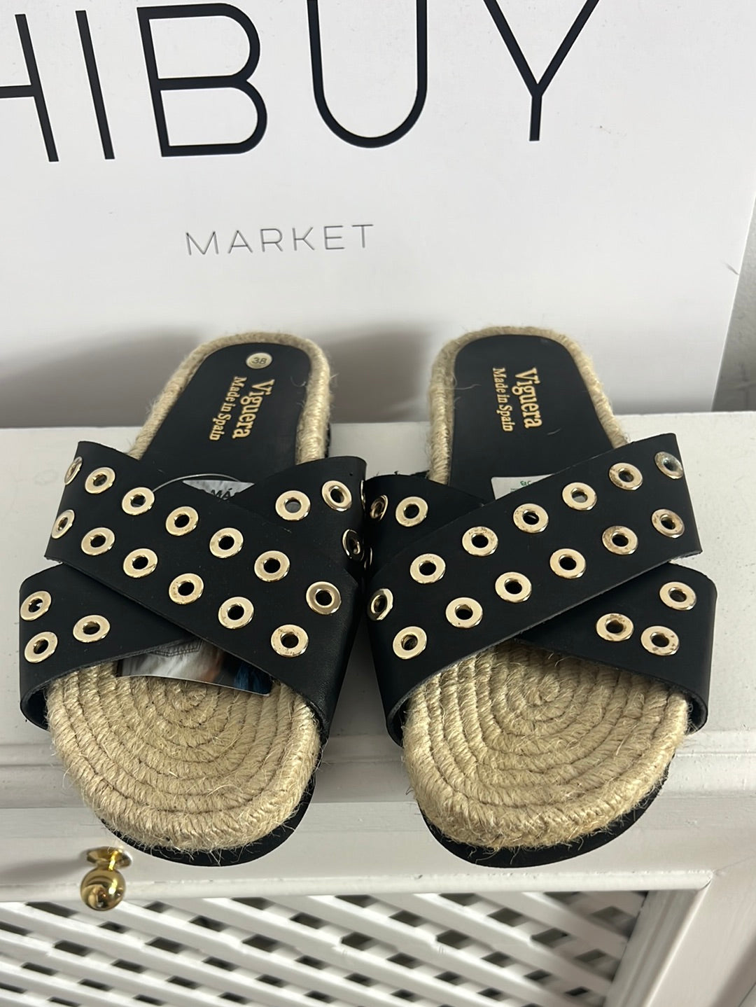 NUEVAS SIN USO. Alpargata plana tiras tachuelas