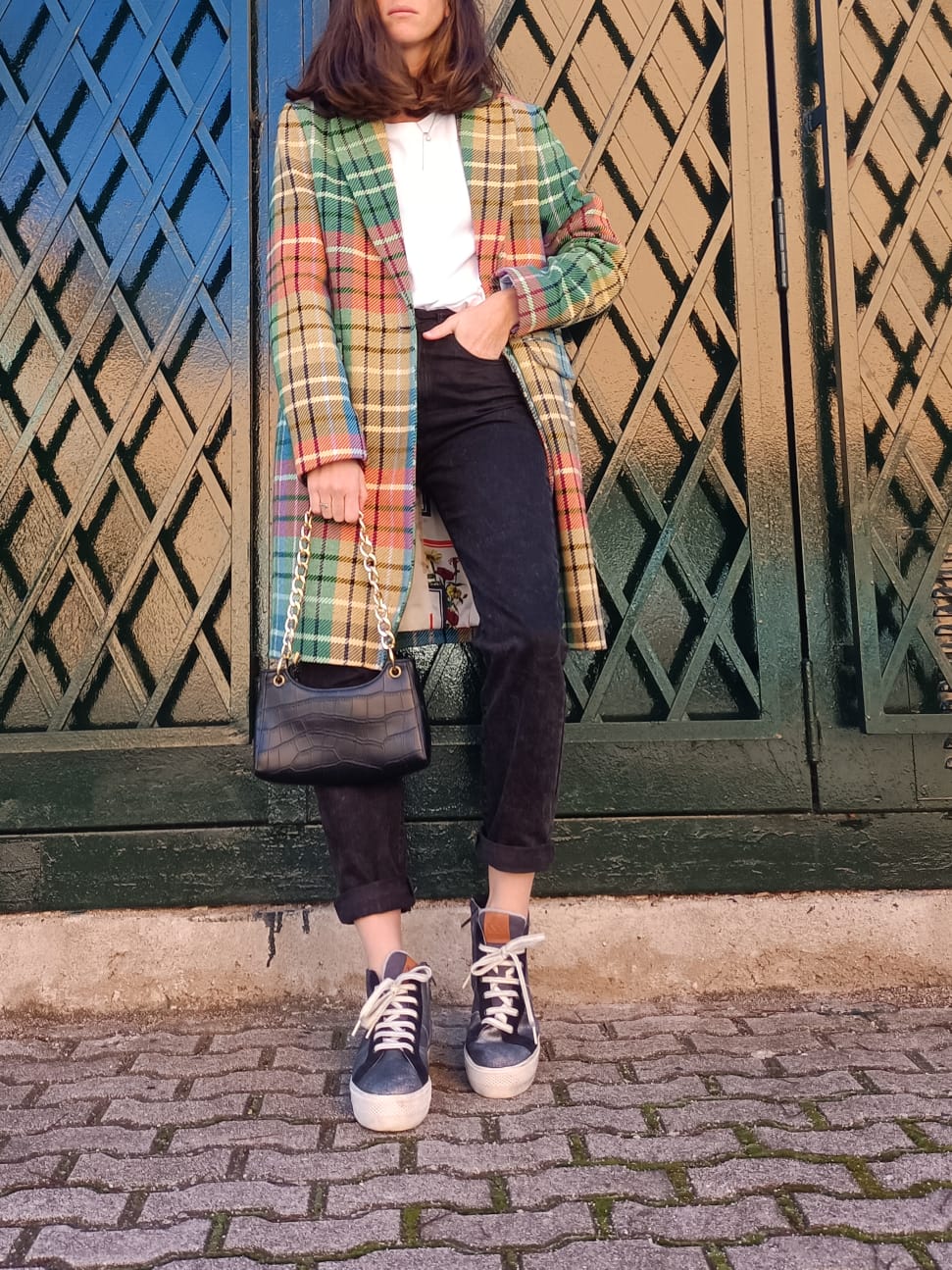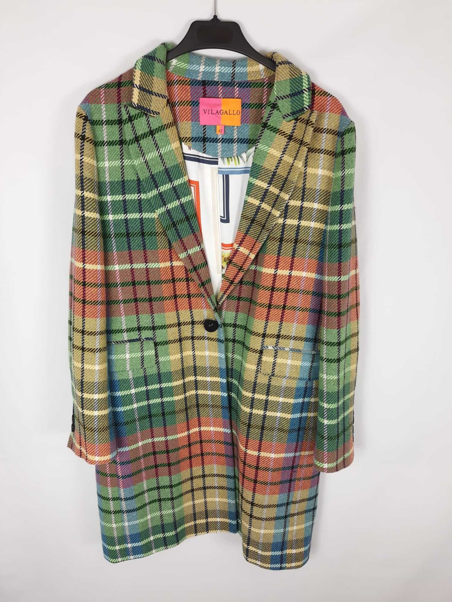 VILAGALLO. Abrigo estampado de cuadros colorido T . 42