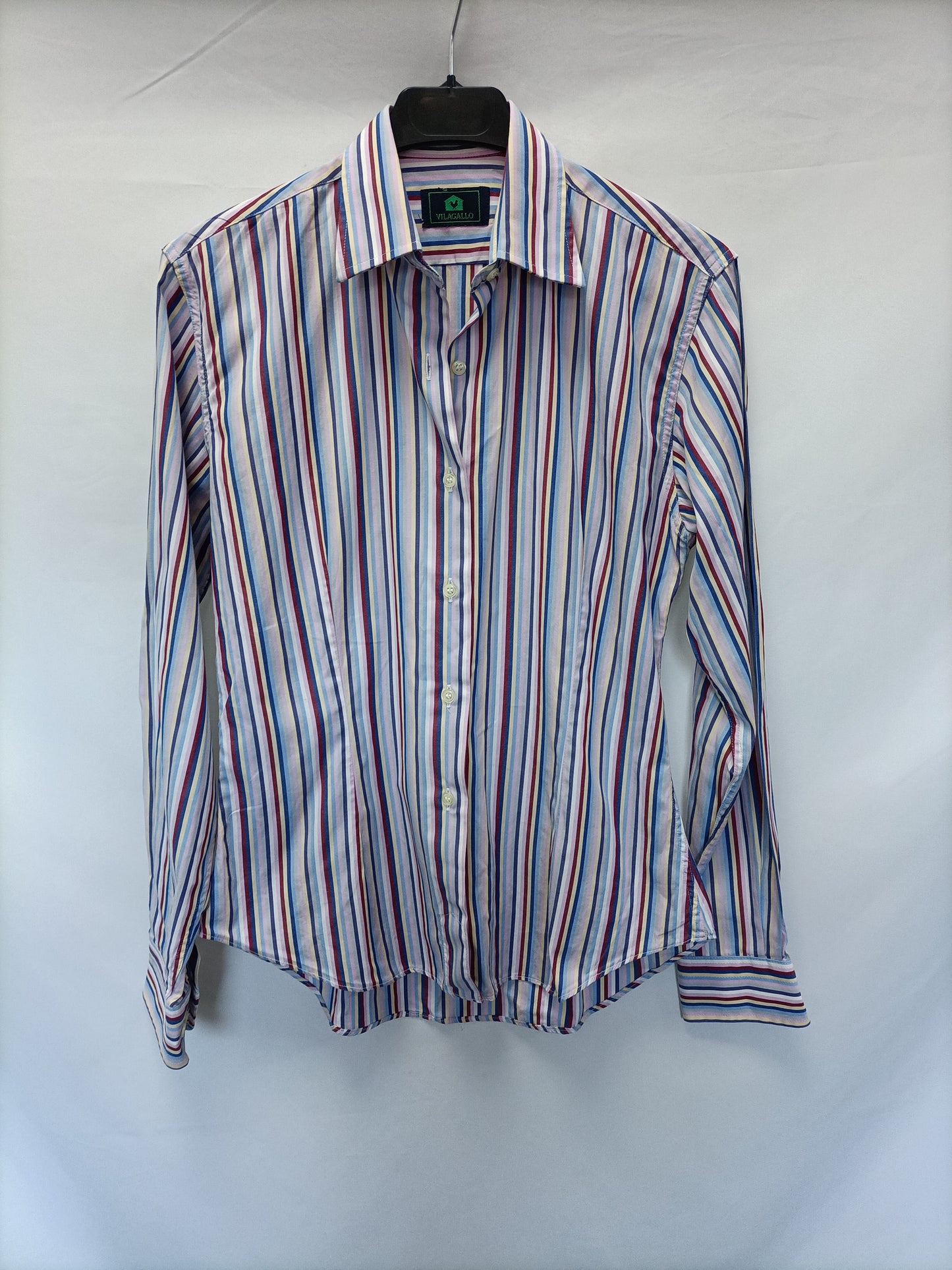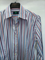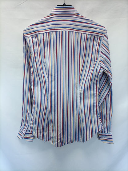 Camisa clásica entallada de rayas multicolor. De sisa a sisa 44 cm largo 62 cm