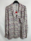 NUEVO CON ETIQUETA. Blusa satinada estampada doble botonadura