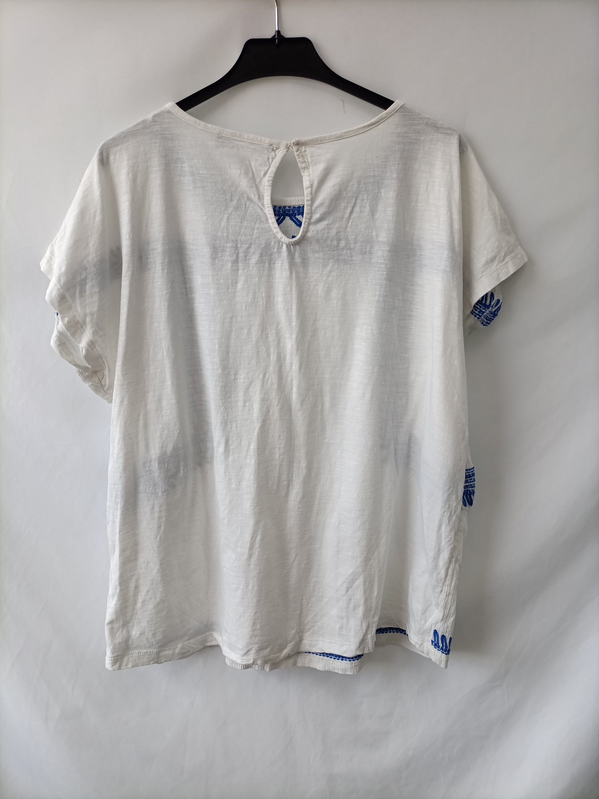 VIOLETA BY MANGO. camiseta blanca detalles azules T.XL