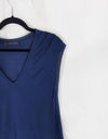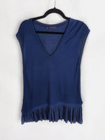 Camiseta fluida azul con parte de abajo con tablas. Es muy elástica. Largo 78 cm