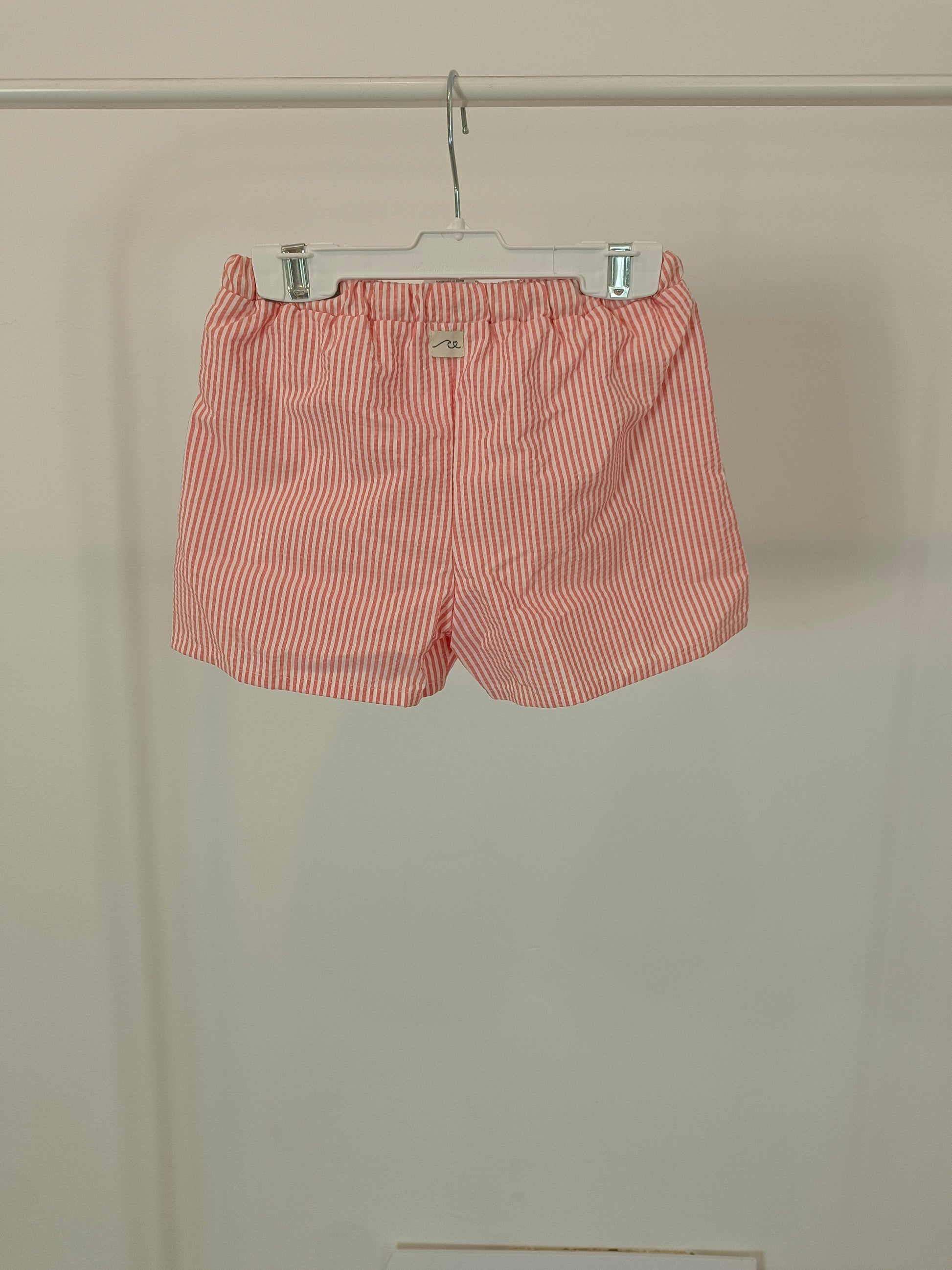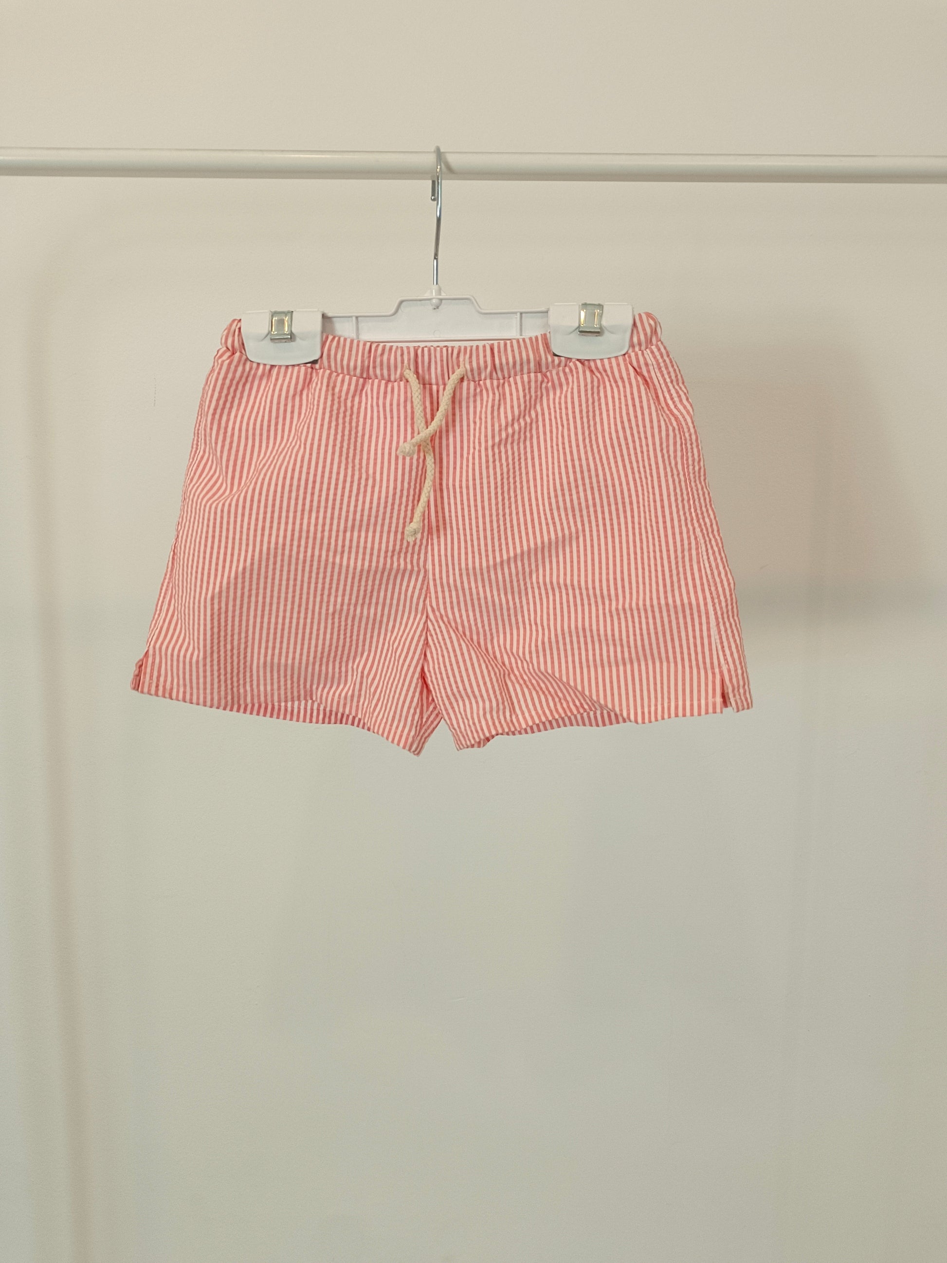 Bañador de rayas rosa y blanco. Cintura elástica ajustable con cuerda.