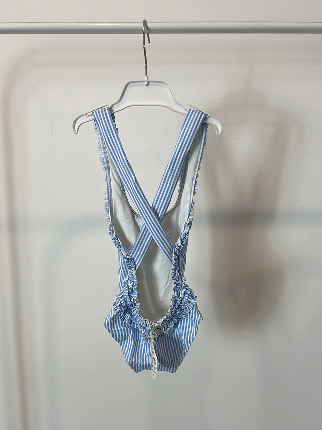 Bañador de rayas azul y blanco con volantito. NUEVO CON ETIQUETA
