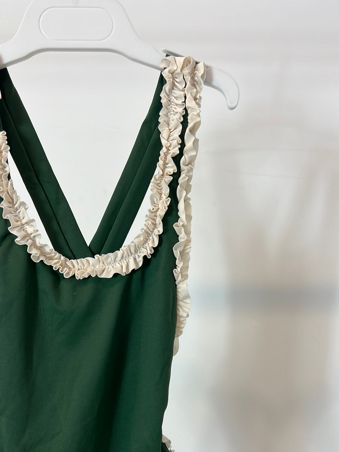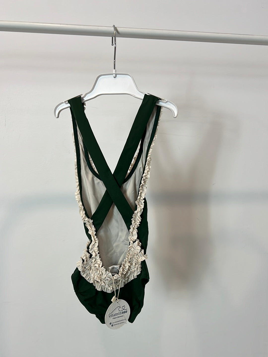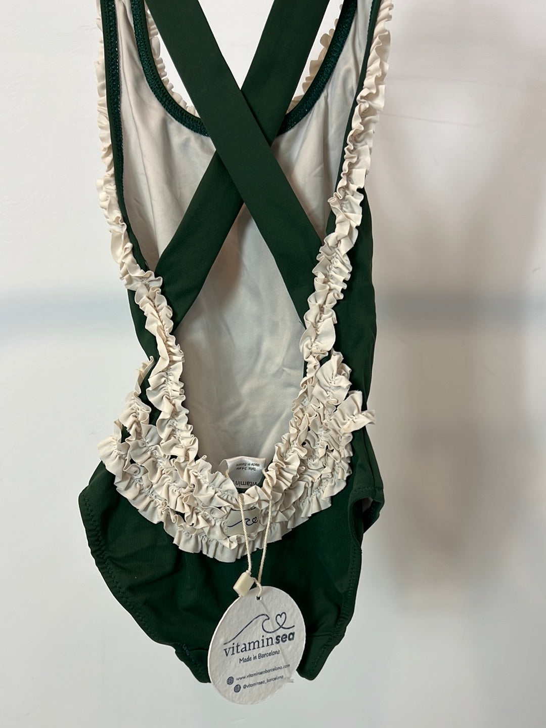 Bañador verde volantito beige. NUEVO CON ETIQUETA