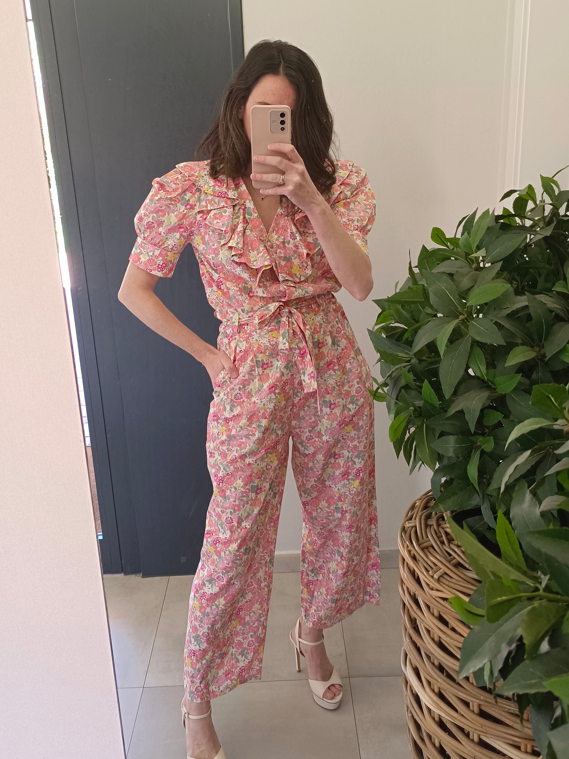 Mono fluido de flores de tirantes con varias alturas. de sisa a sisa 49 cm cintura 38 cm largo 144 cm