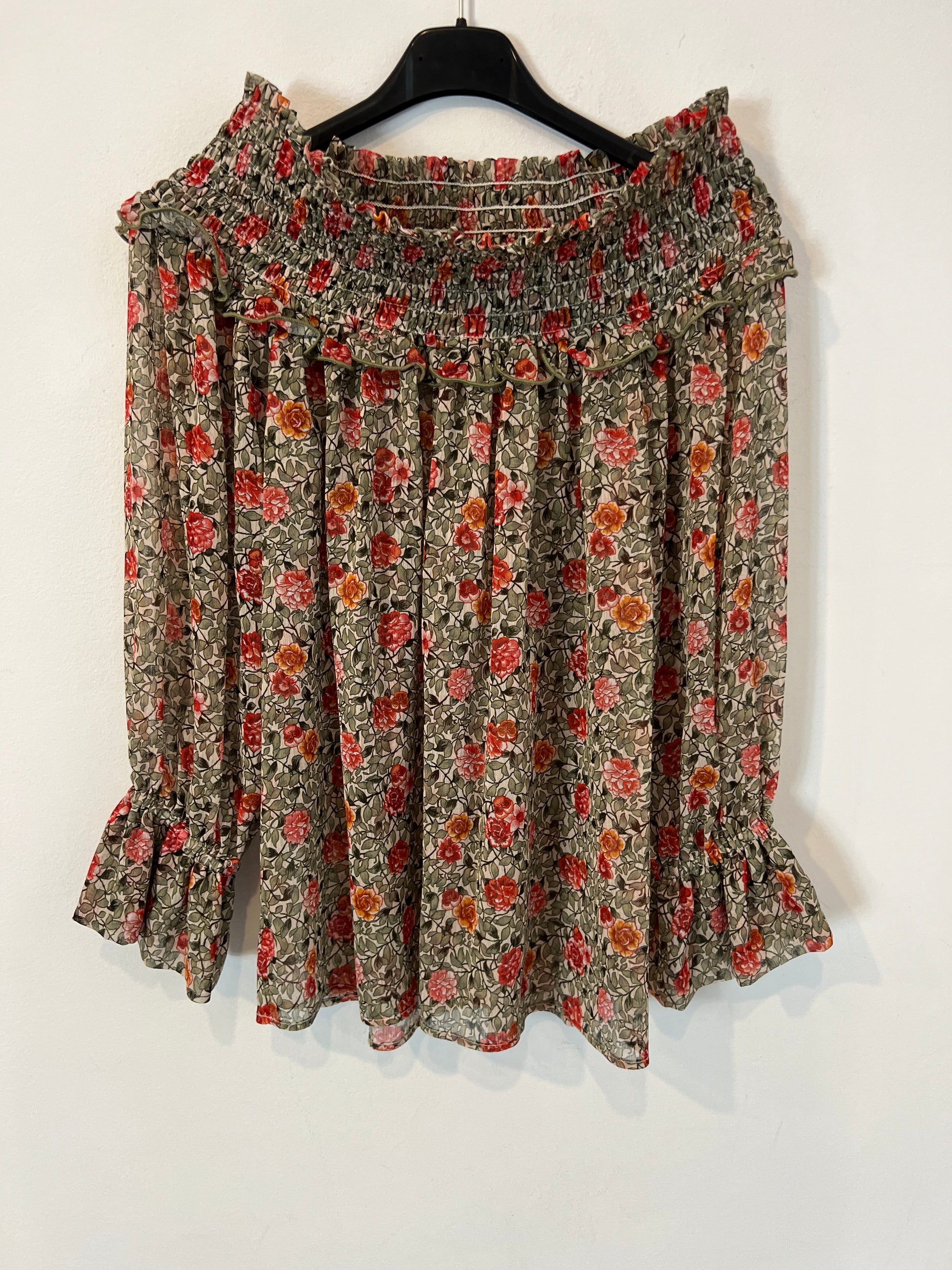 VP COLLECTION. Blusa flores escote nido de abeja. T XS (S)