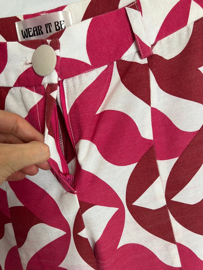 WEAR IT BE. Pantalón estampado retro pinzas. T 36 (Tara)