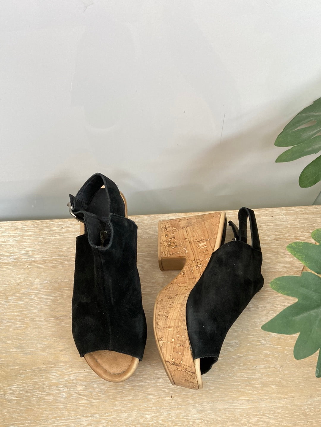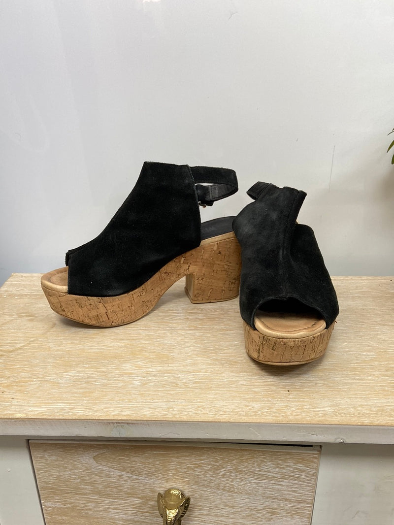 Plataformas negras de antelinacin tacón de corcho. Tacón 8 cm, plataforma 4 cm