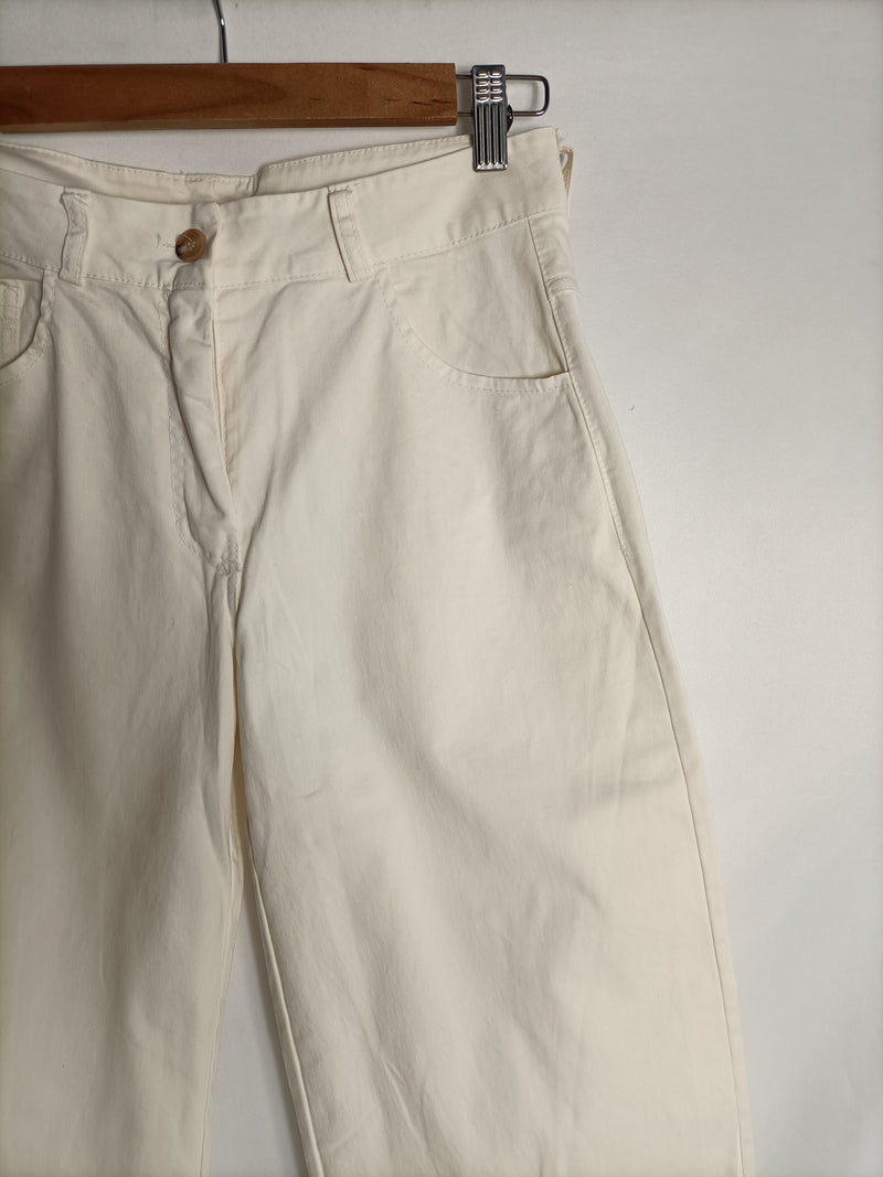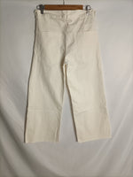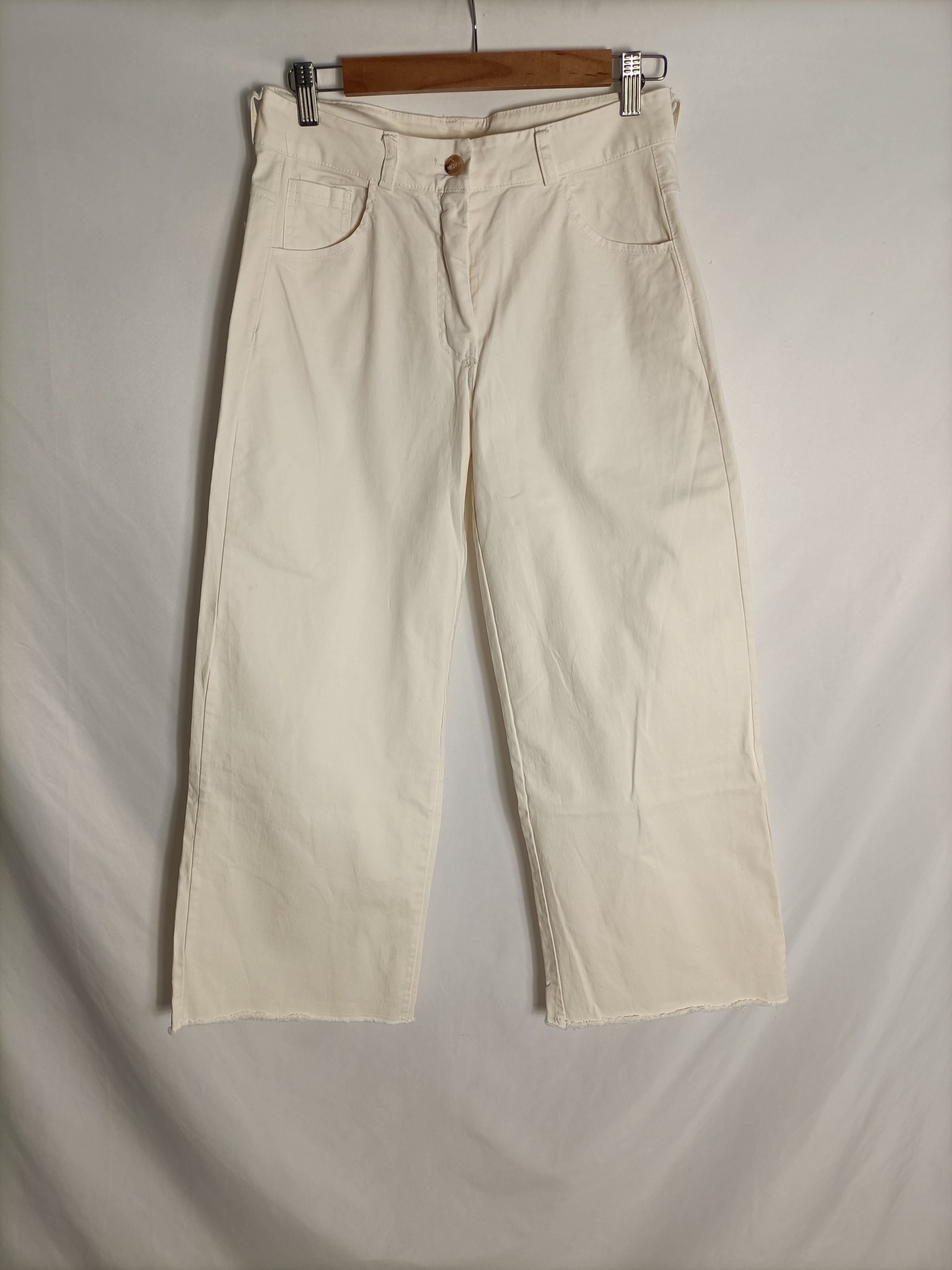 Pantalón culotte beige tejido denim. Cintura 38 cm