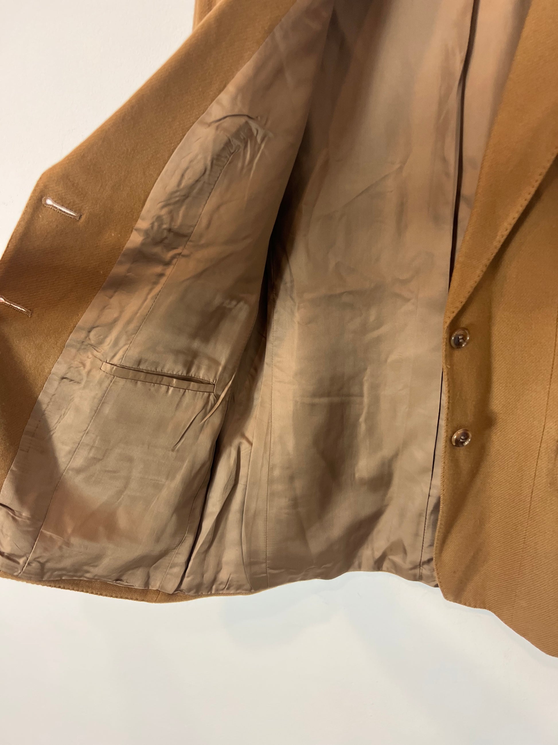 Blazer 100% cashmere camel hombreras mini. Hombros 39cm, de sisa a sisa 46cm, largo 66cm. Talla como una S/M
