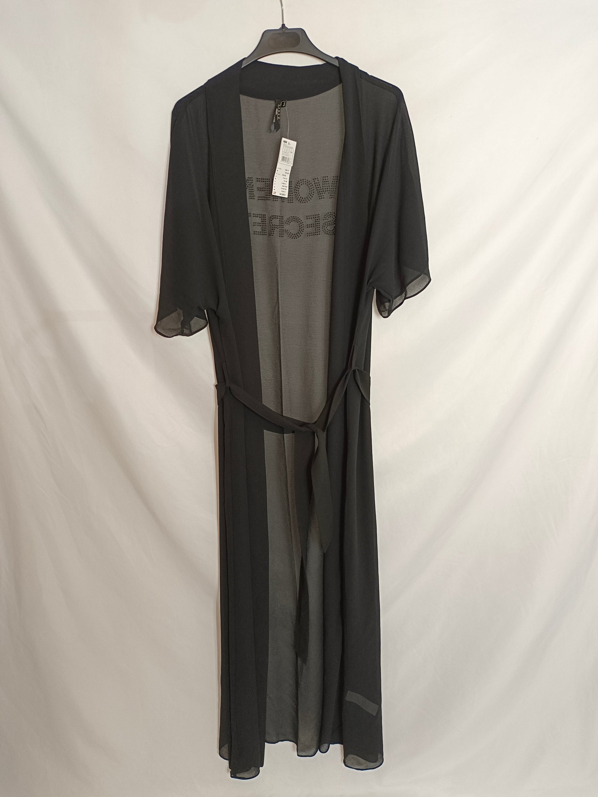 NUEVO CON ETIQUETA. kimono/bata negra semitransparente con lazada