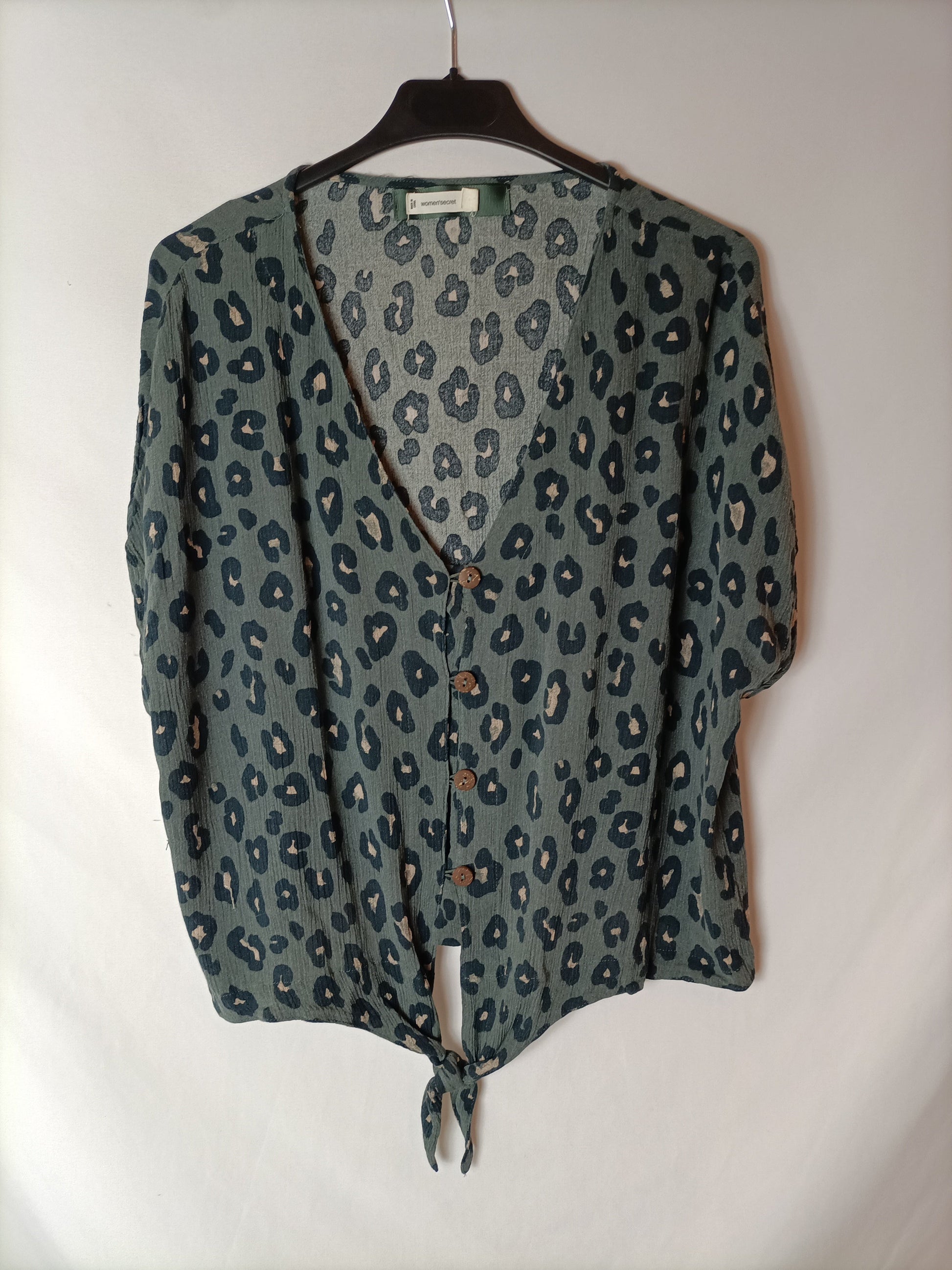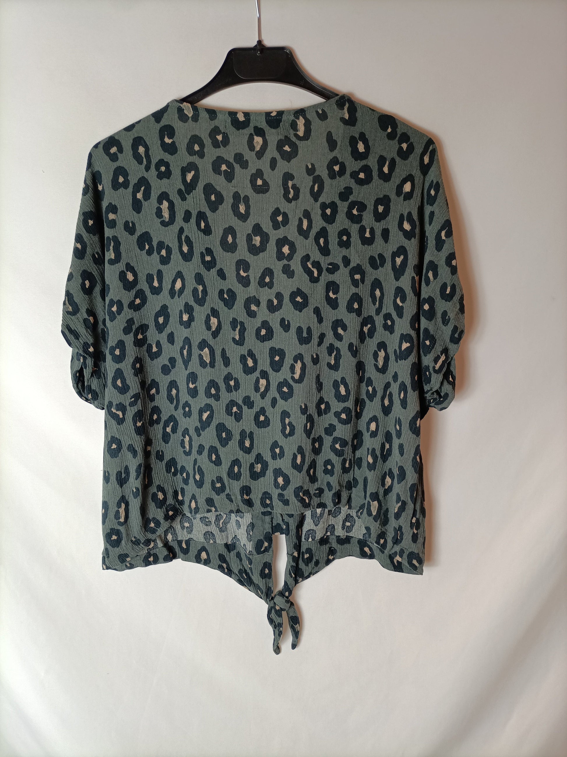 top verde fluido con estampado animal print detalle de lazada delantera.