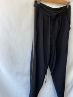 Pantalón negro estilo relajado y fluidos. No es elástico. Cintura ajustable con lazada. Cintura 36 cm largo 95 cm