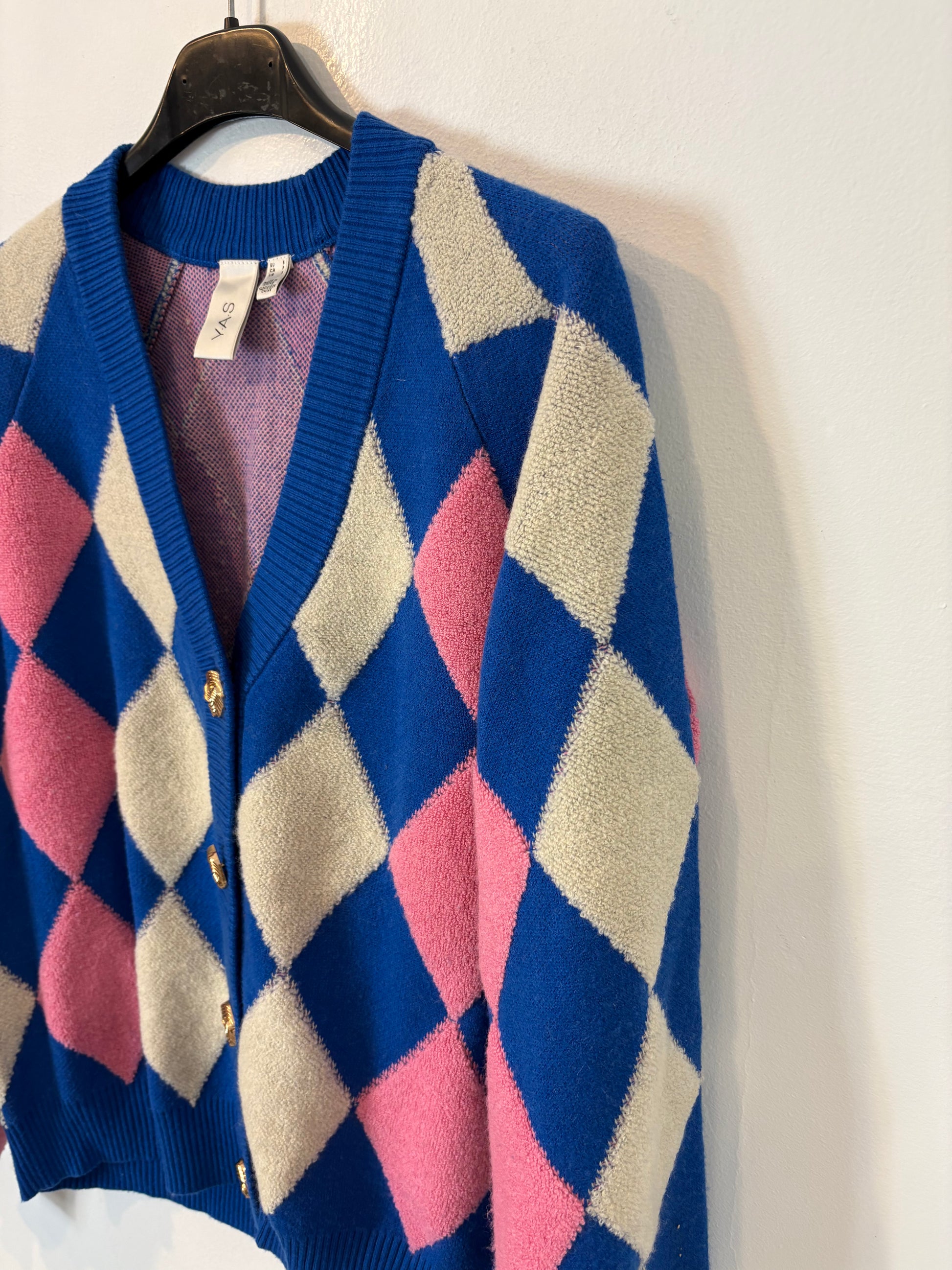 Chaqueta rombos rosa y azul. Espalda 48 cm, Largo 59 cm