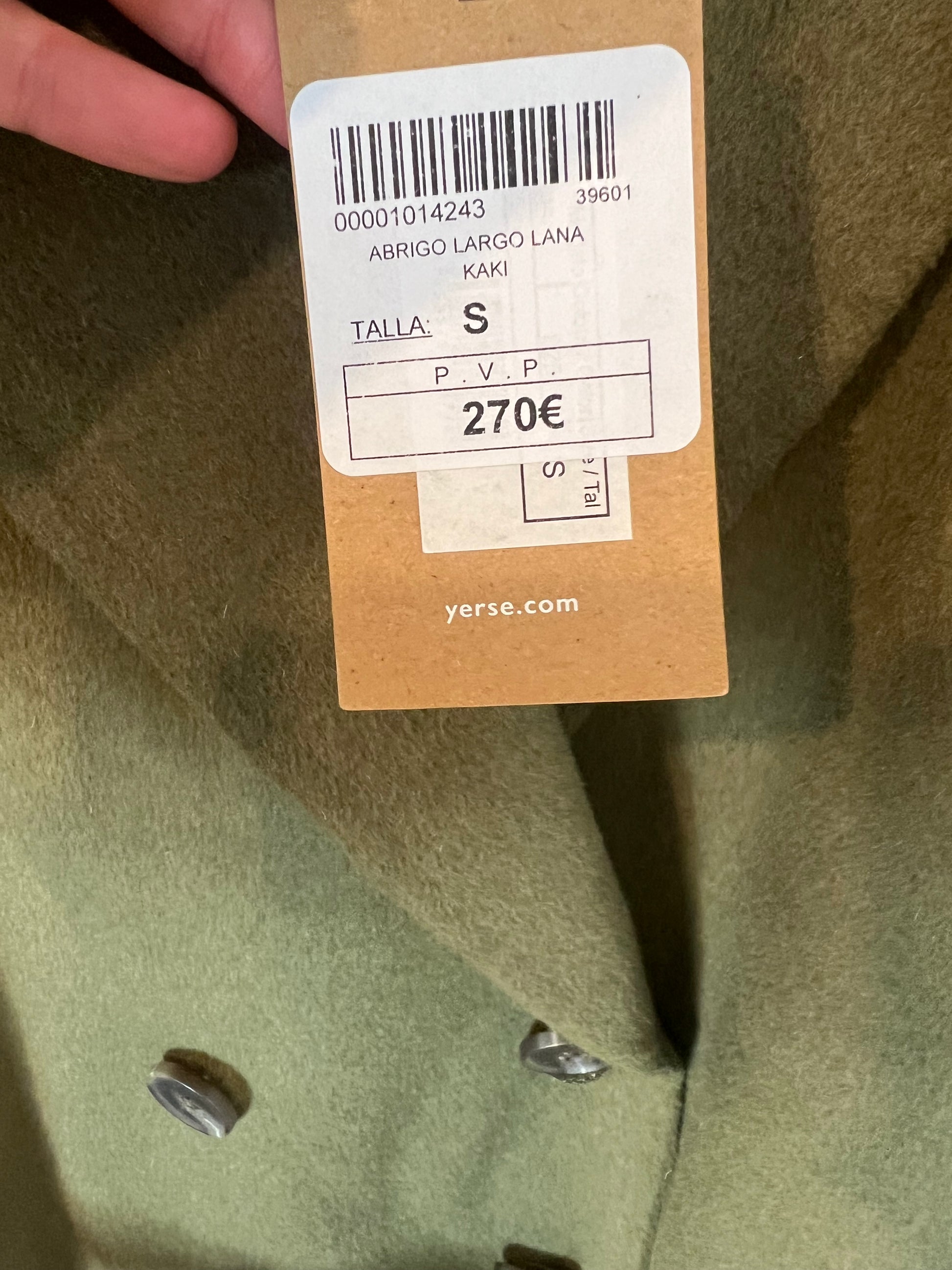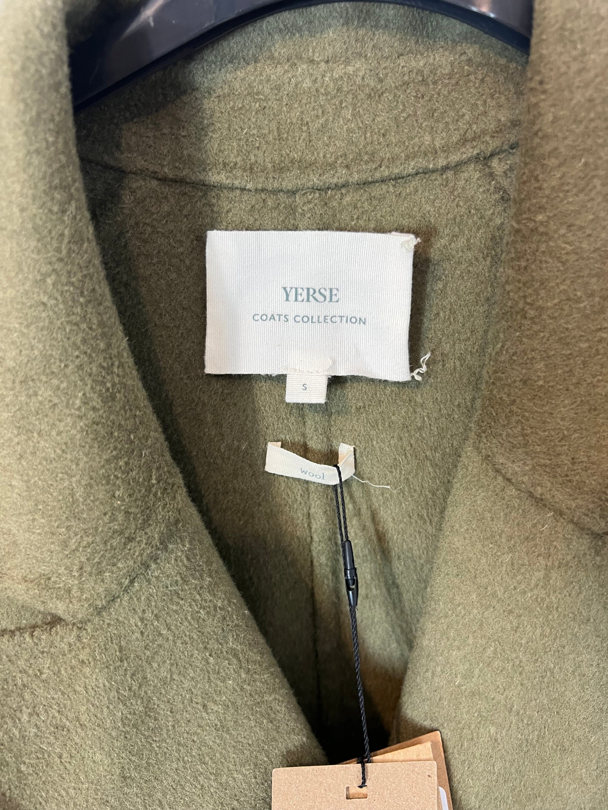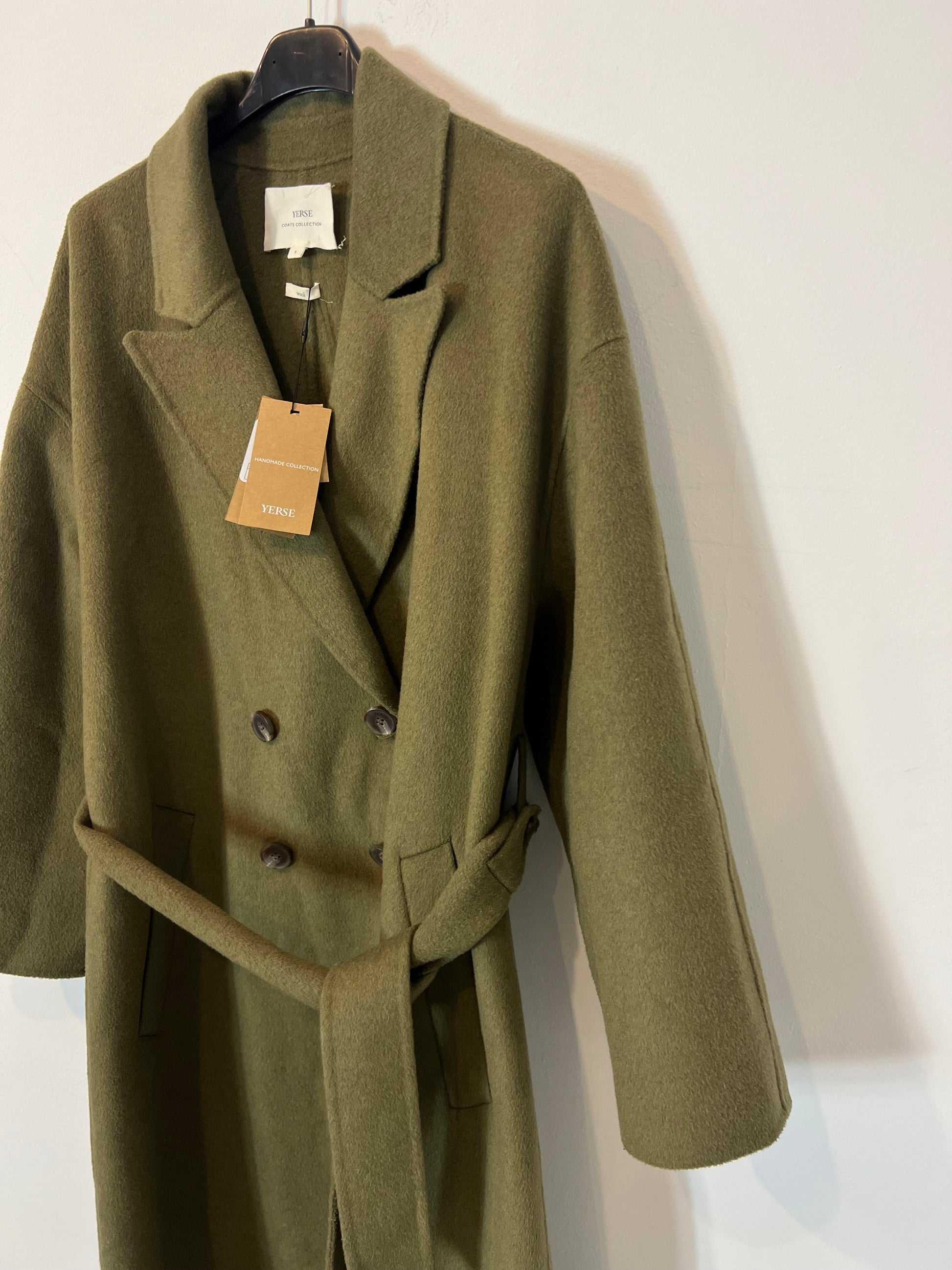 YERSE. Abrigo largo lana verde. T S