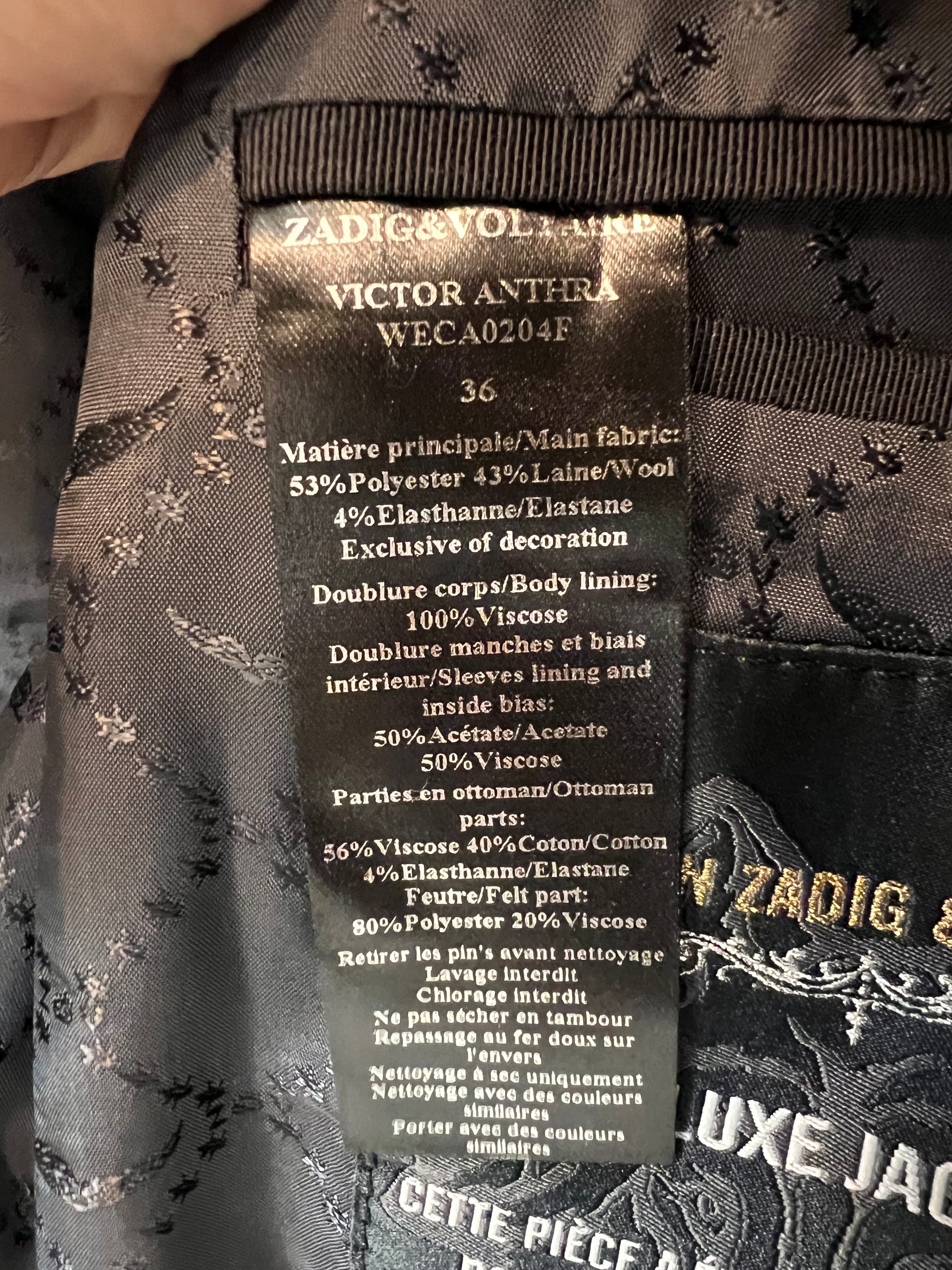 ZADIG&VOLTAIRE. Blazer gris marengo y negra detalle solapa. T 36