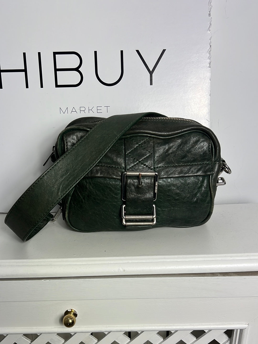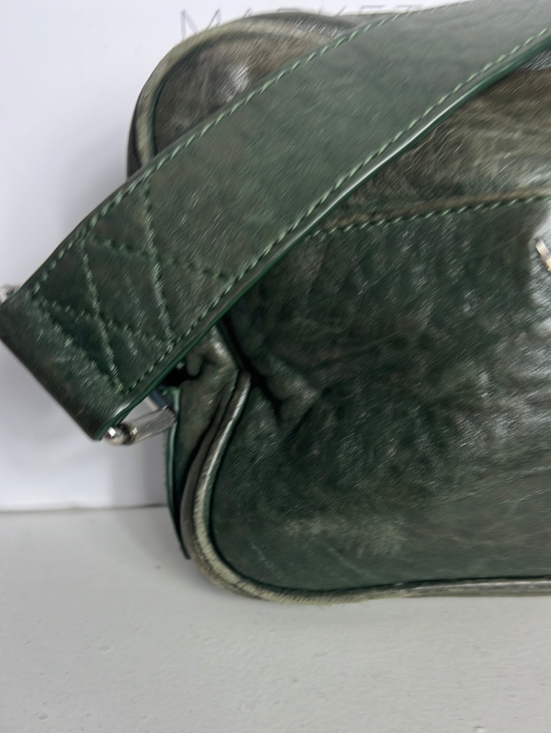 bolso verde de piel. Tara: Zonas tejido desgastado