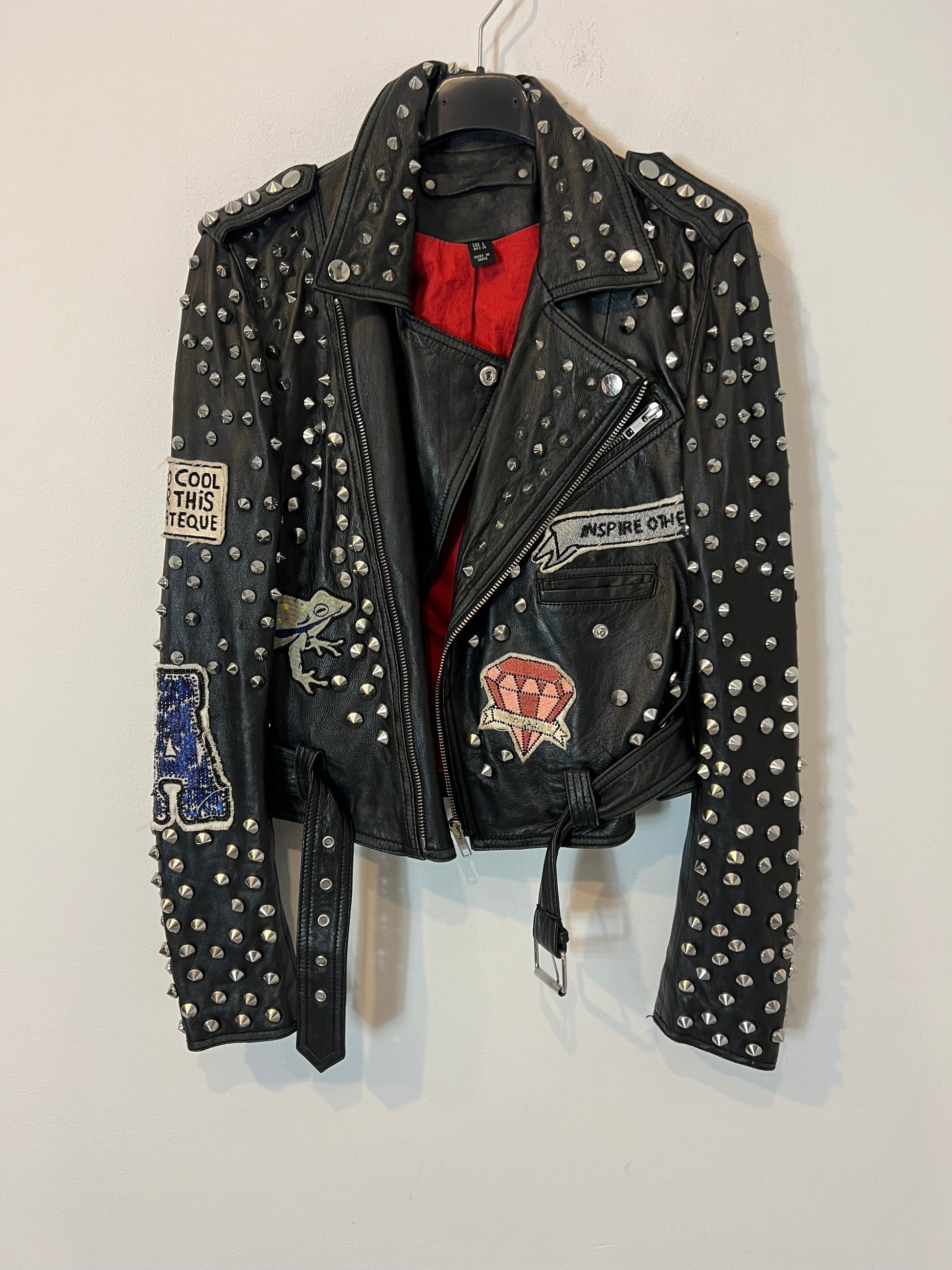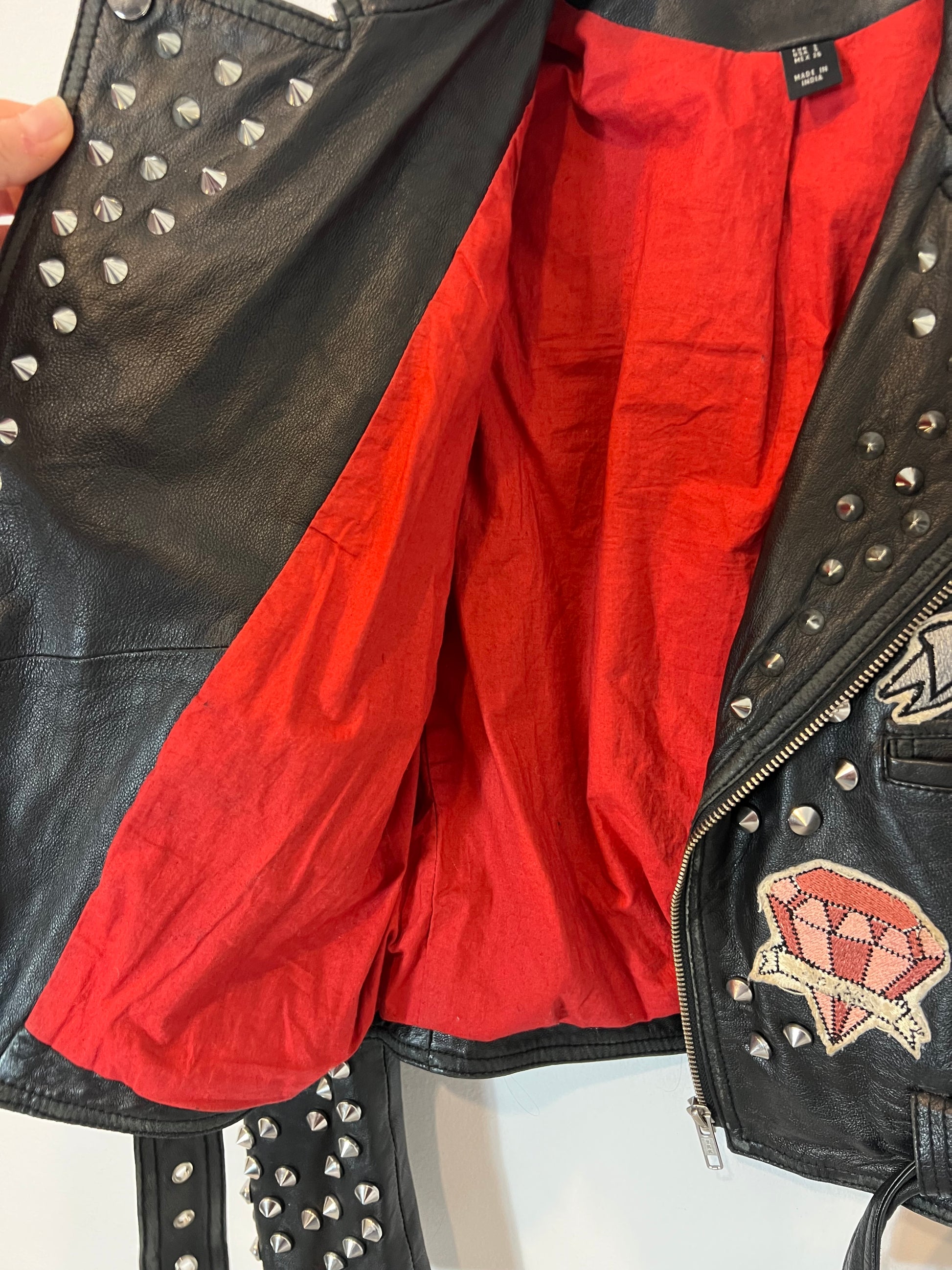 ZARA. Cazadora piel con tachuelas y bordados T.s