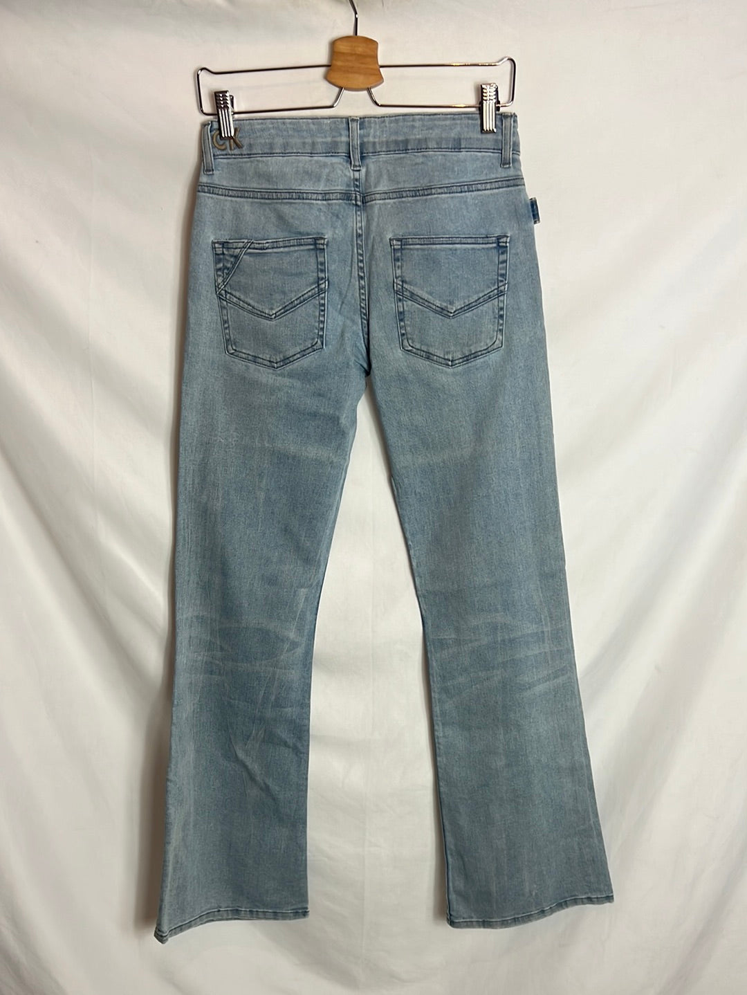 pantalón vaquero de campana letras bordadas. Cintura 36cm, largo 107cm, Semi elastico
