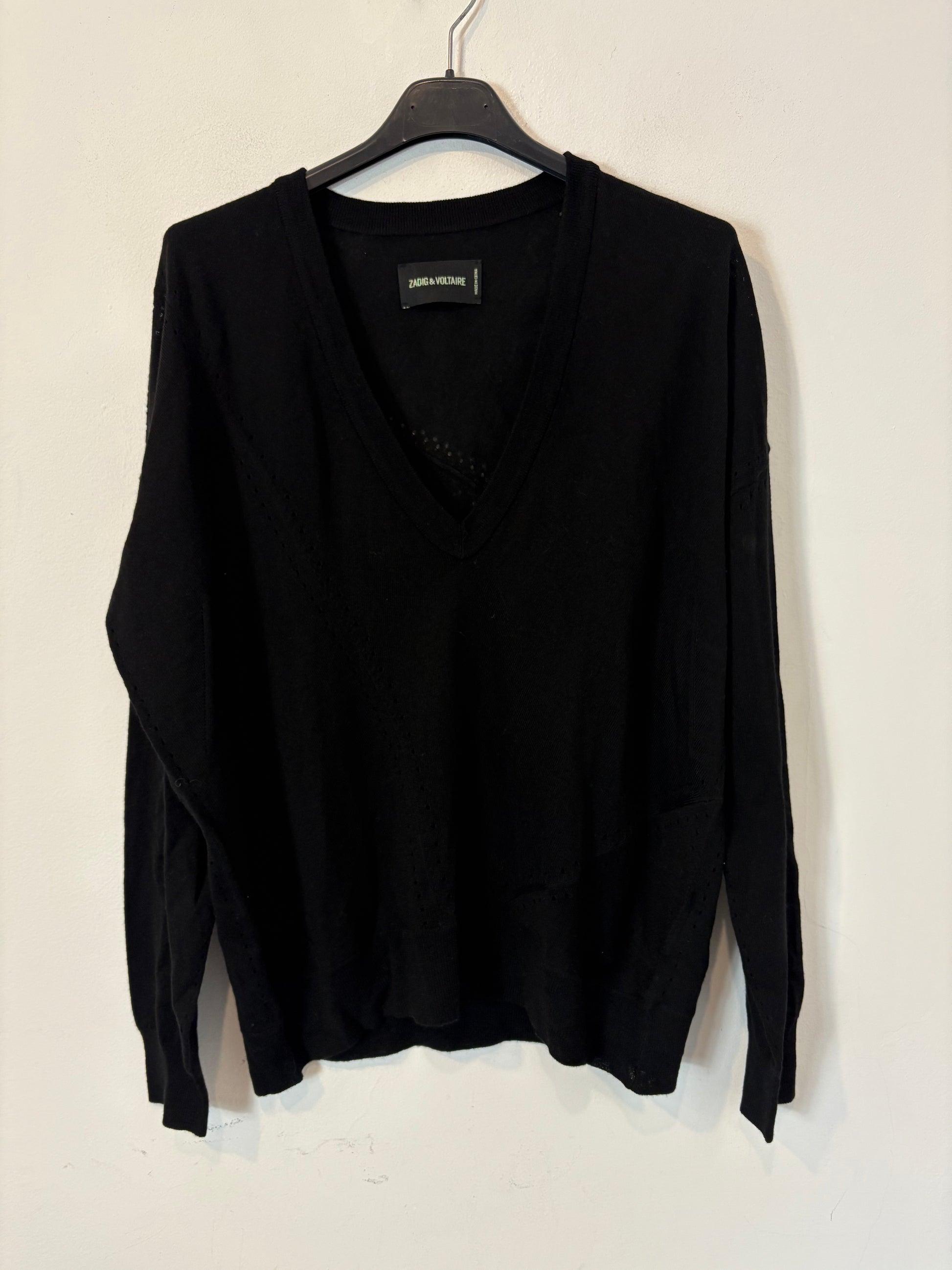 ZADIG & VOLTAIRE. Jersey negro lana cuello pico