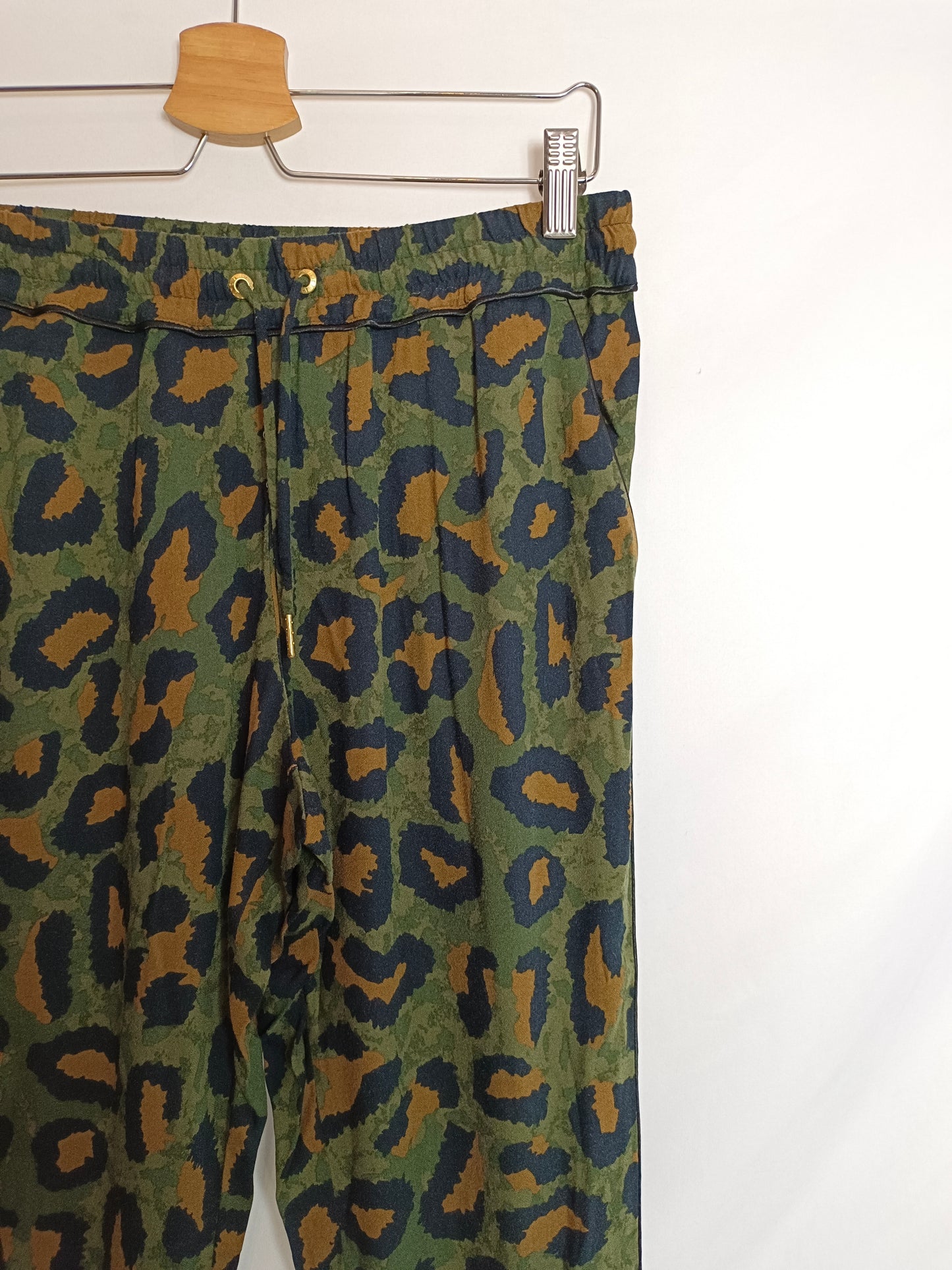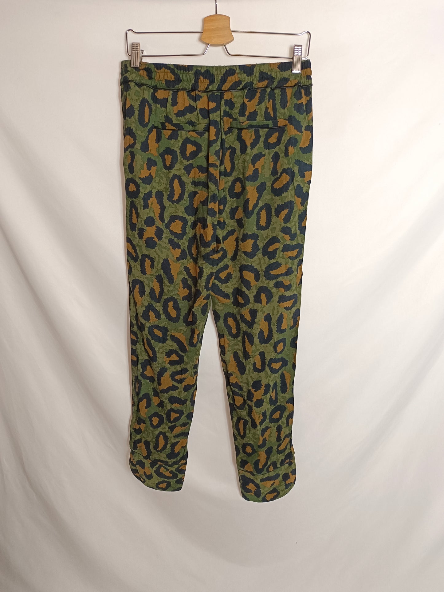 pantalón fluido con estampado de camuflaje. cintura elástica.