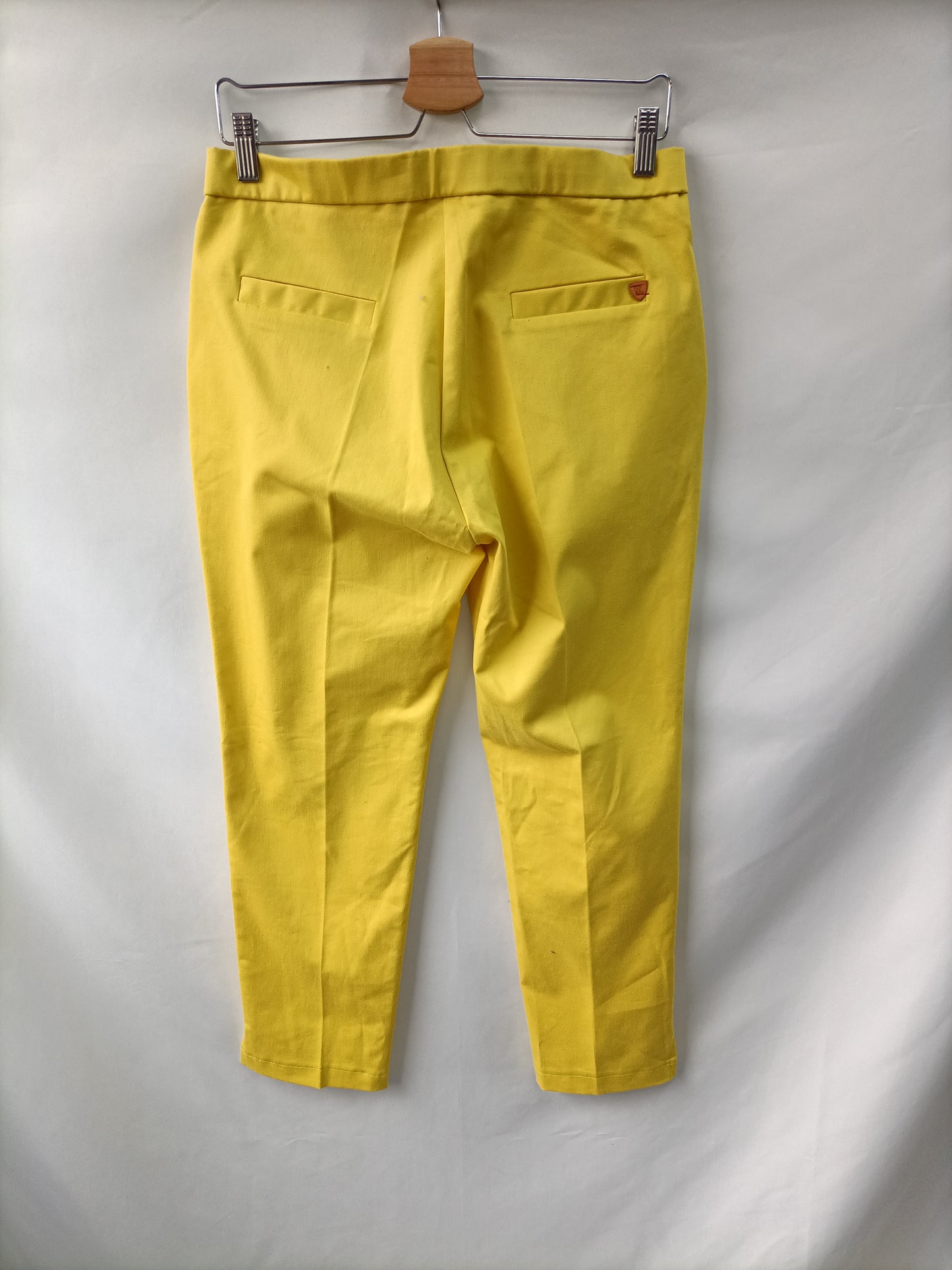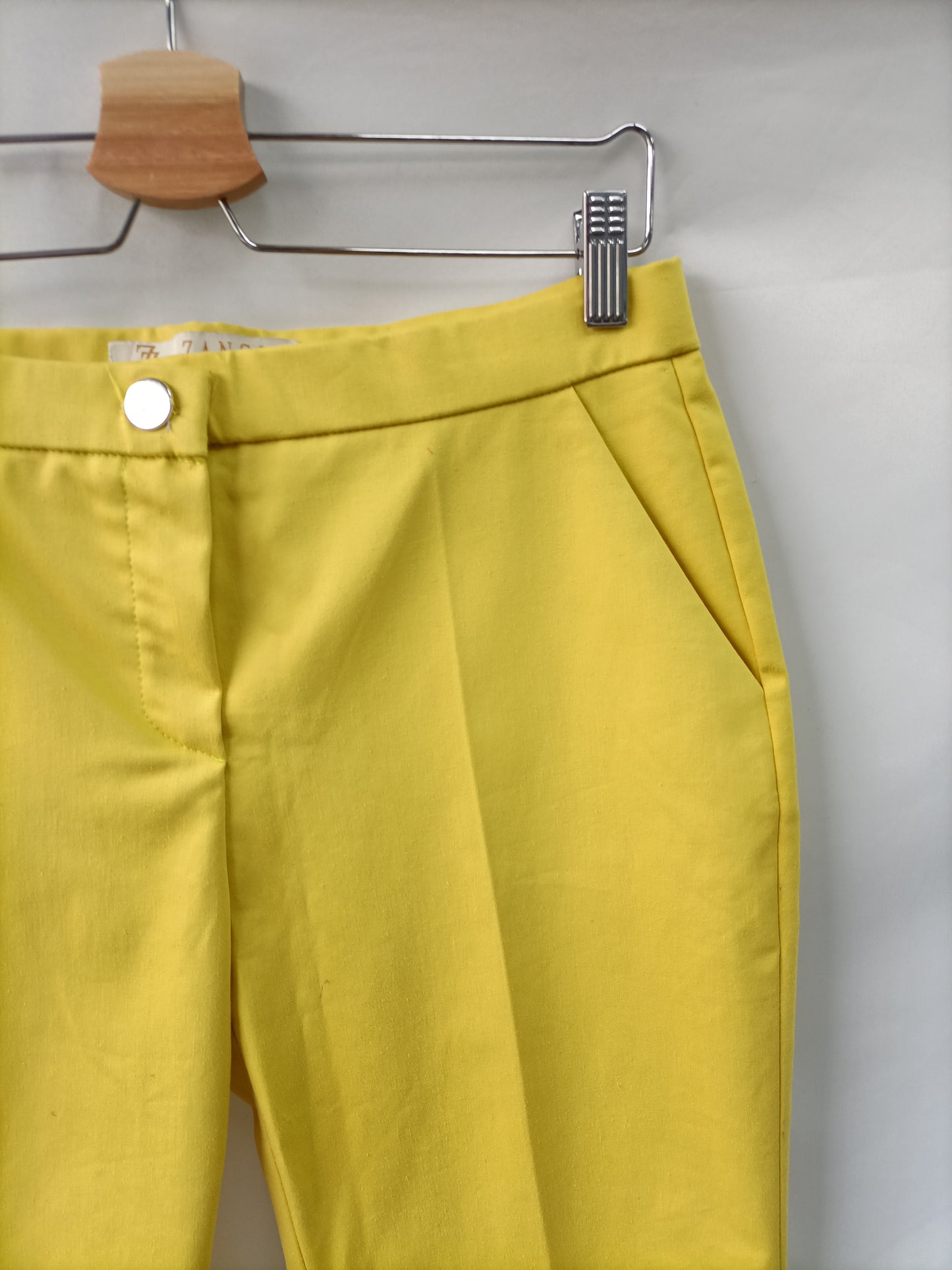 Pantalón amarillo tipo chino recto. No elástico. Cintura 40 cm, cadera 45 cm, tiro 25 cm, largo 92 cm