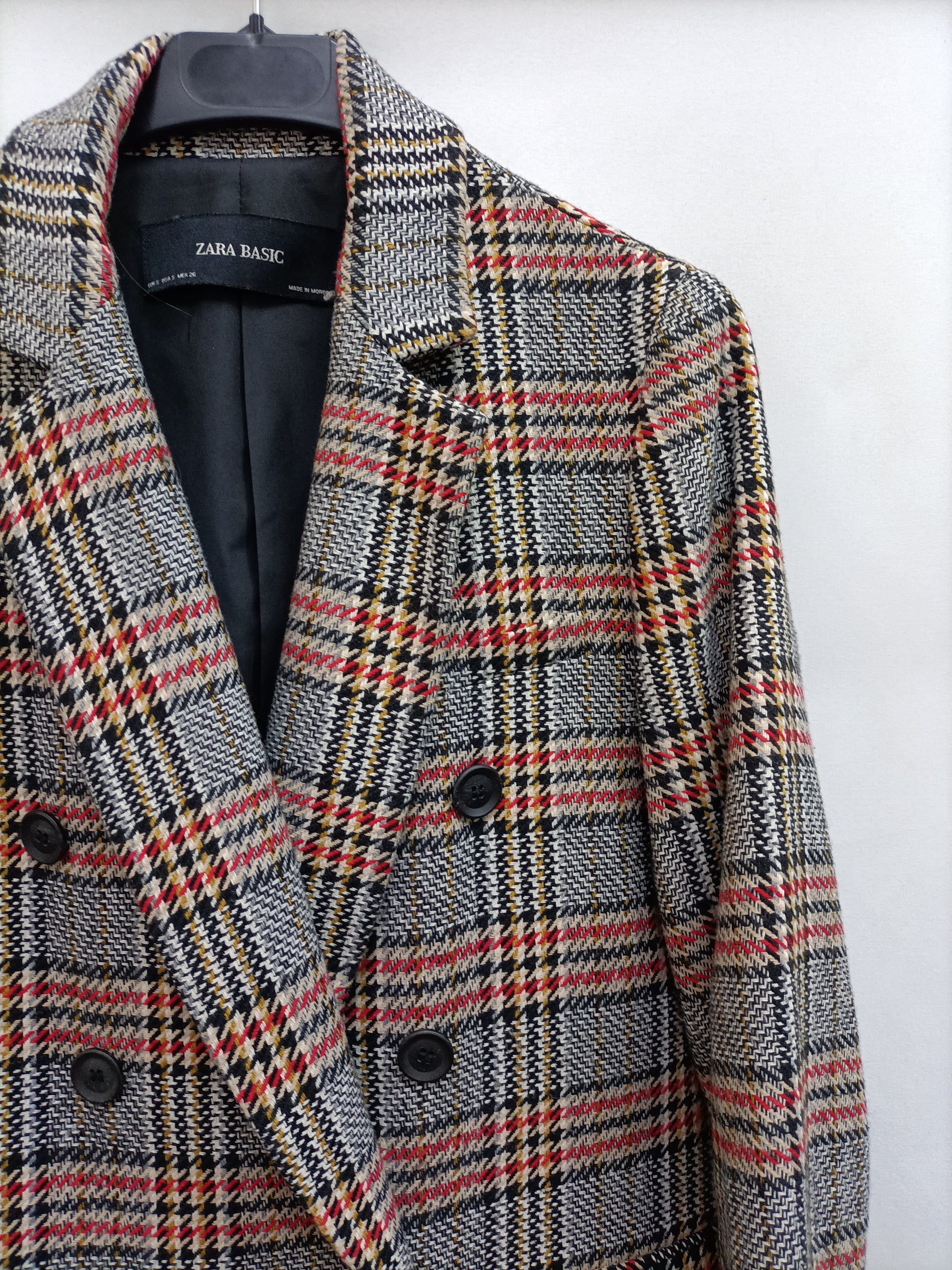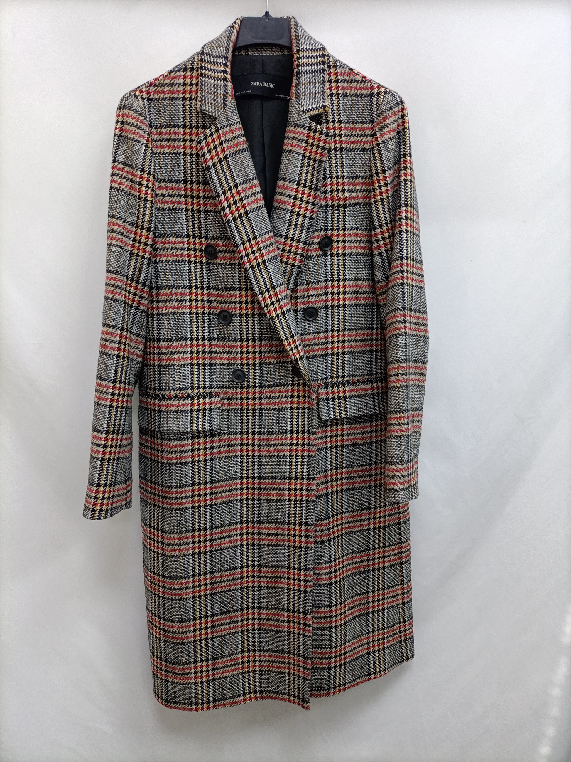Abrigo de paño de cuadros. de sisa a sisa 47 cm largo 102 cm