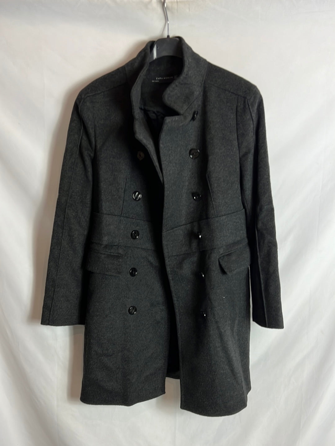 abrigo gris. De sisa a sisa 46cm, largo 86cm. Tiene hombreras finas
