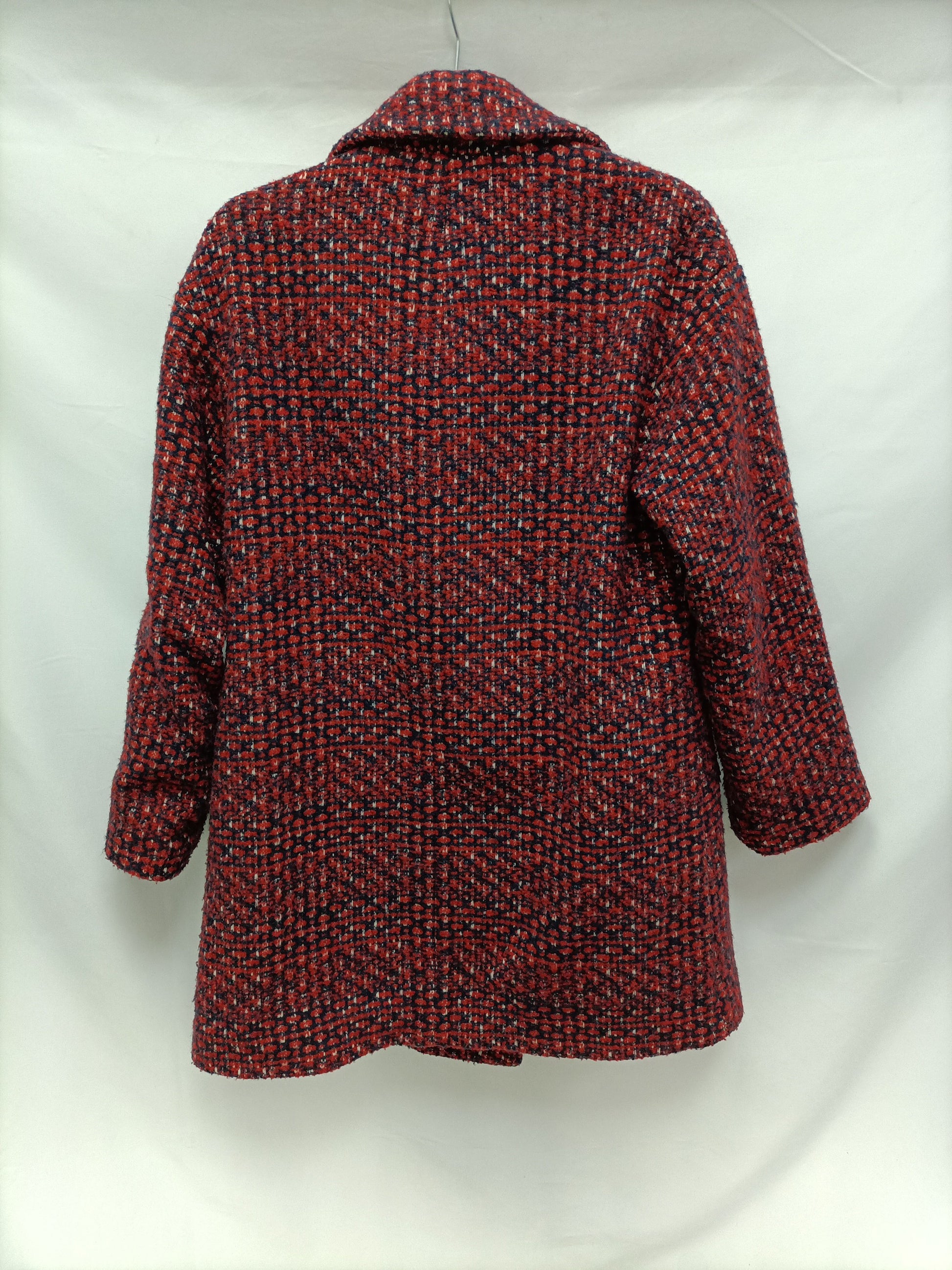 ZARA. Abrigo tweed rojo y azul T.s