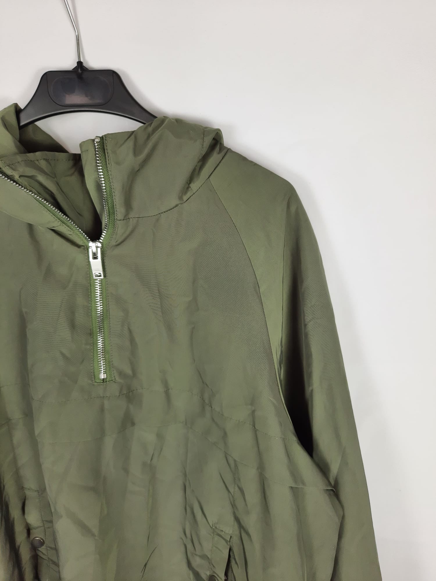 ZARA. abrigo verde estilo canguro impermeable T.l