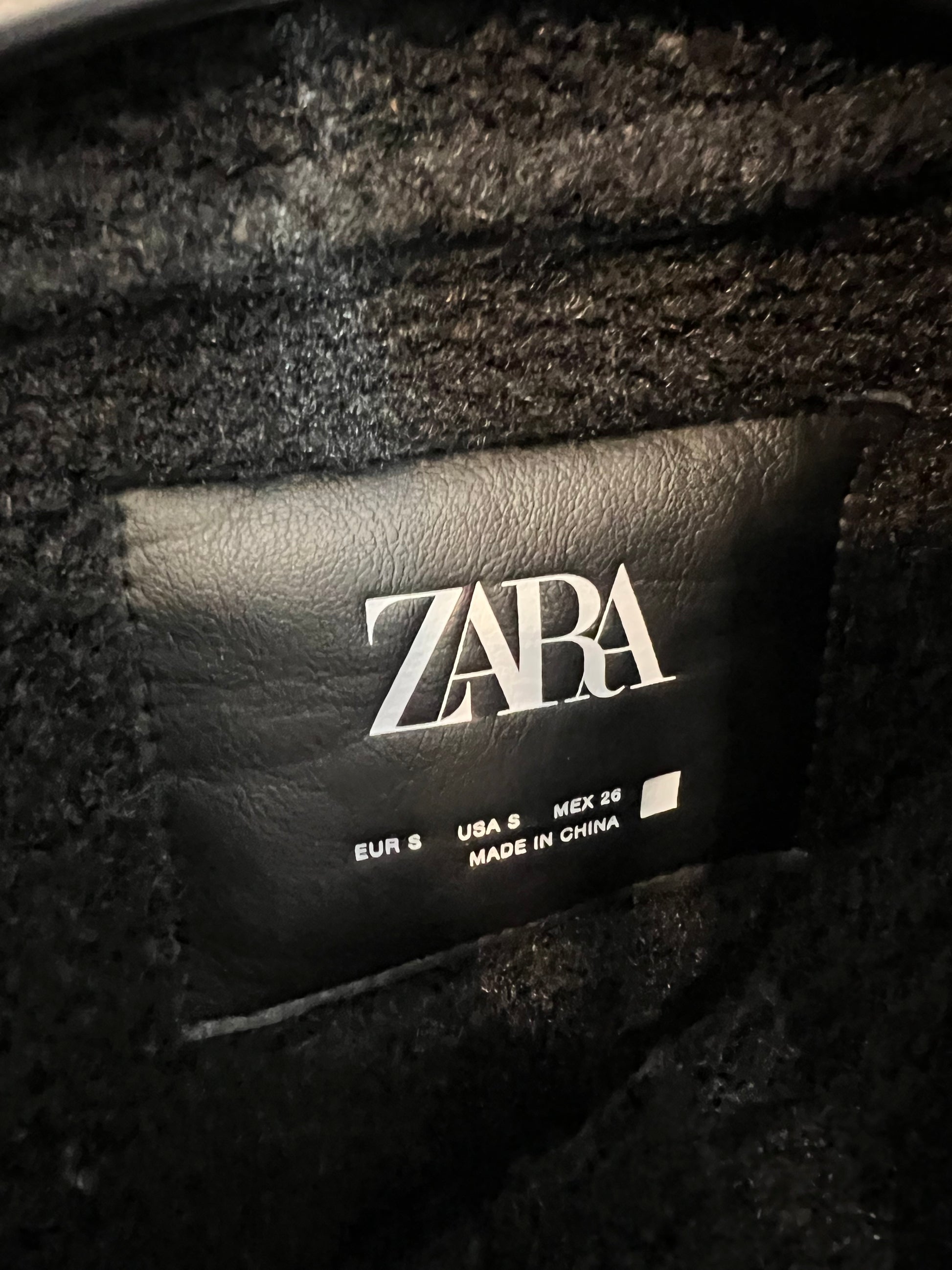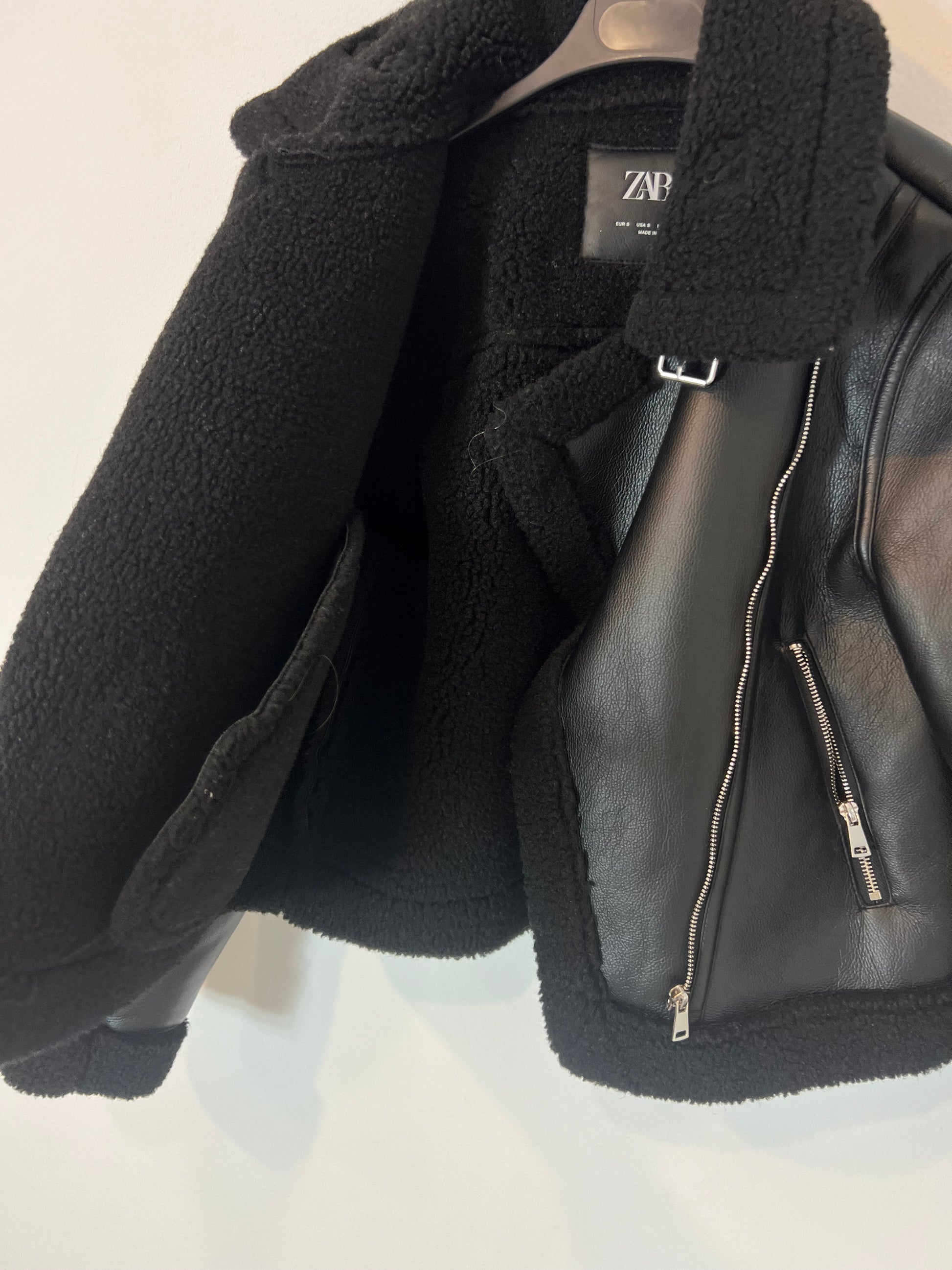 ZARA. Biker negra efecto piel con borrego. T S