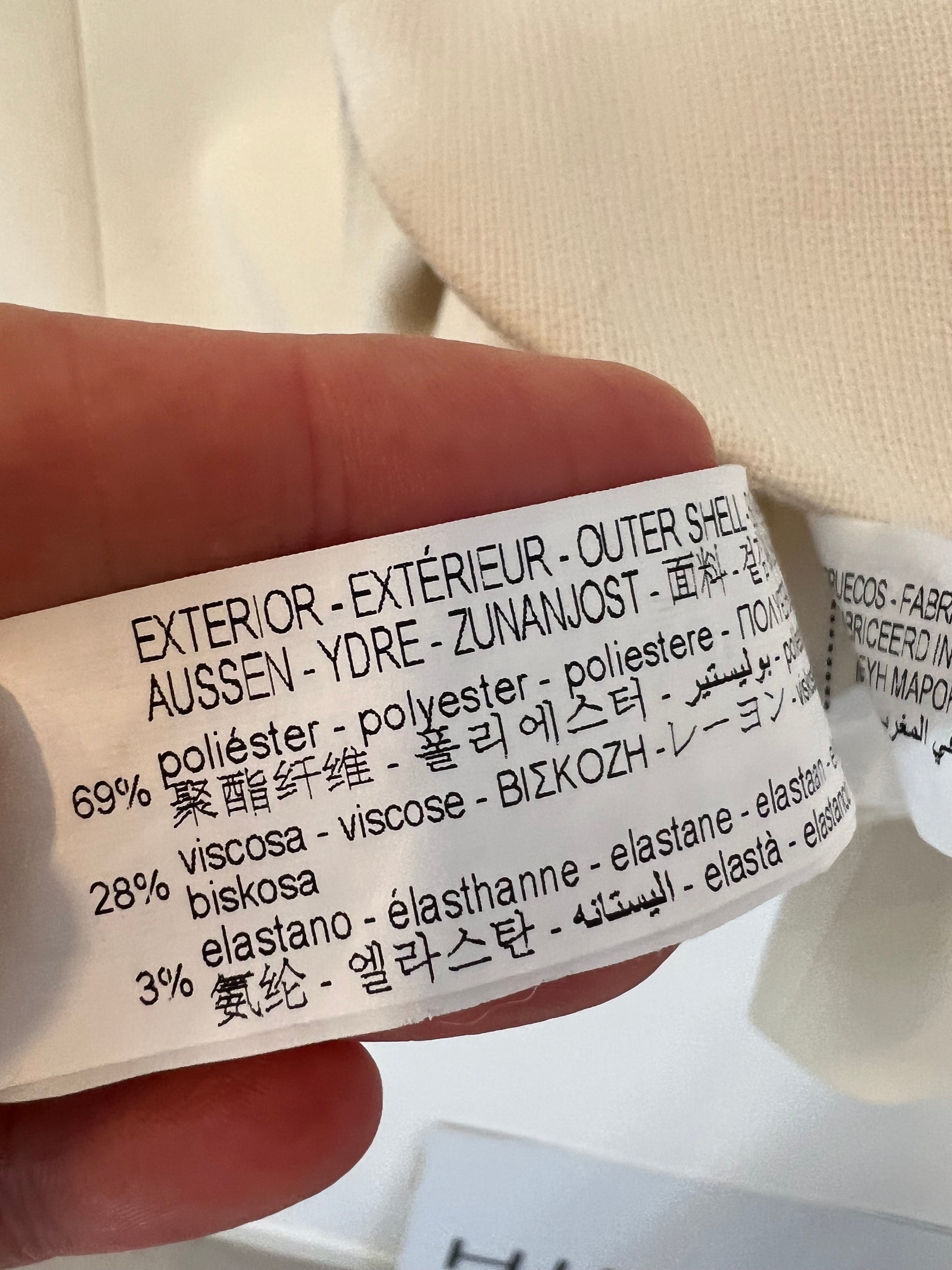 blazer fina beige de tejido con textura. Abotonada. De sisa a sisa 46 cm largo 71 cm