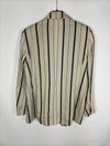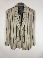 Zara. M. NUEVO CON ETIQUETA. Blazer beige con rayas negras cruzada. Tejido tipo lino. No elástica y oversized. De sisa a sisa 54 cm largo 78 cm. 69,95