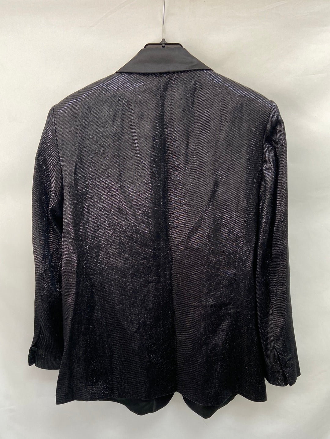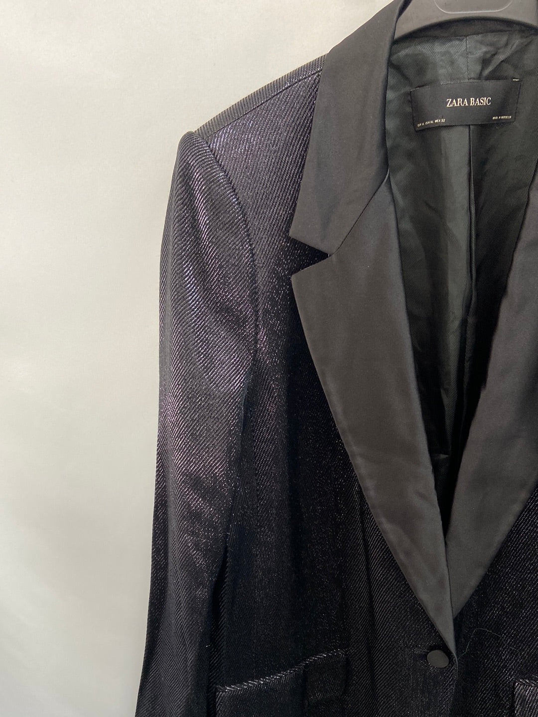Blazer negra de fiesta con hilos plateados. Fluida y no elástica. Largo 75 cm
