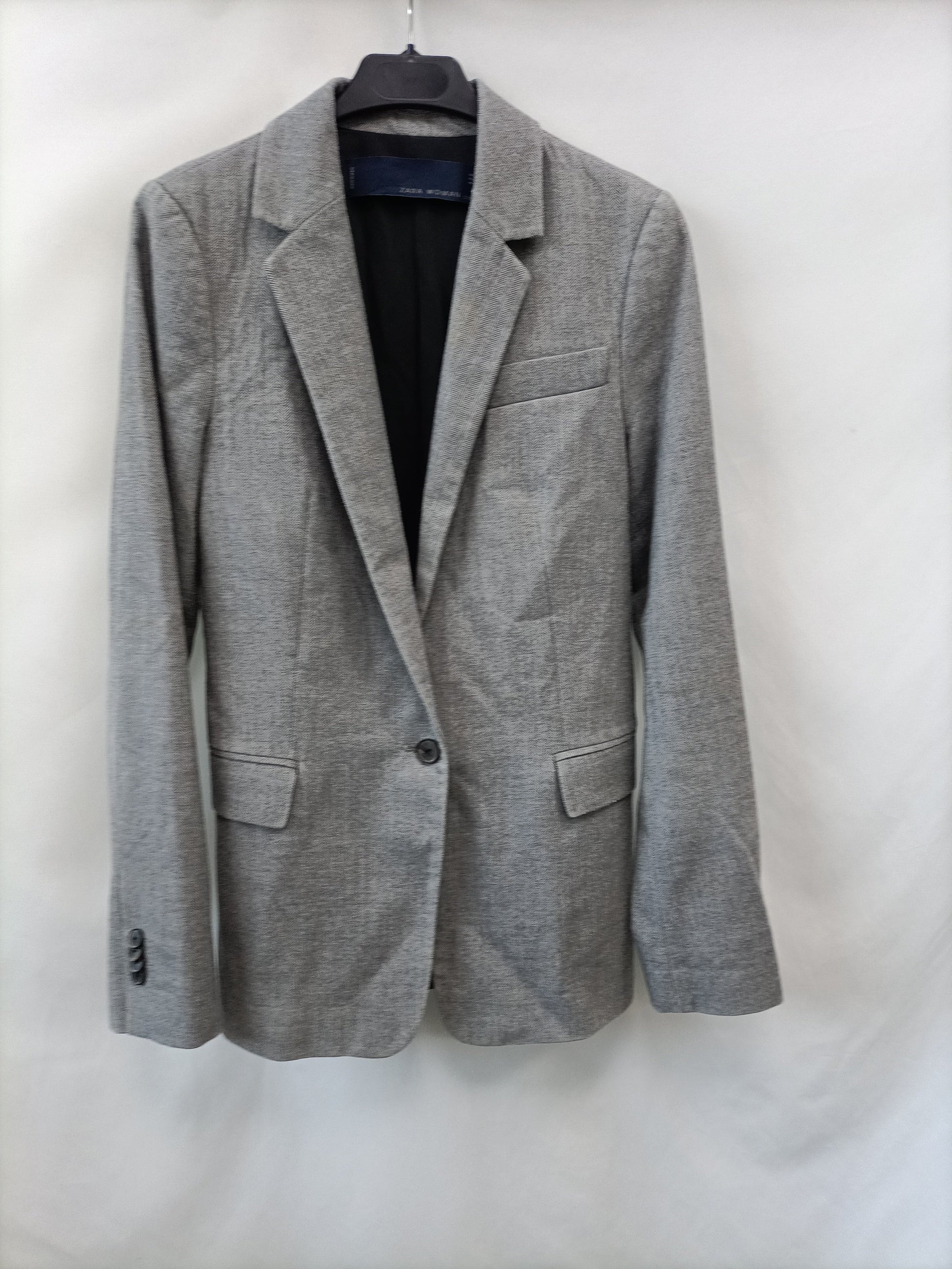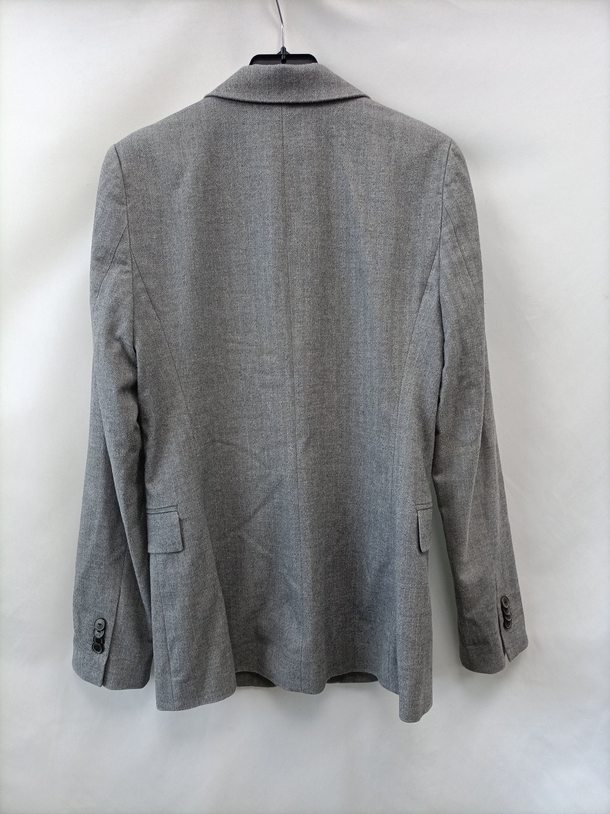 Blazer gris jaspeada espiga arreglada. De sisa a sisa 44 cm largo 72 cm