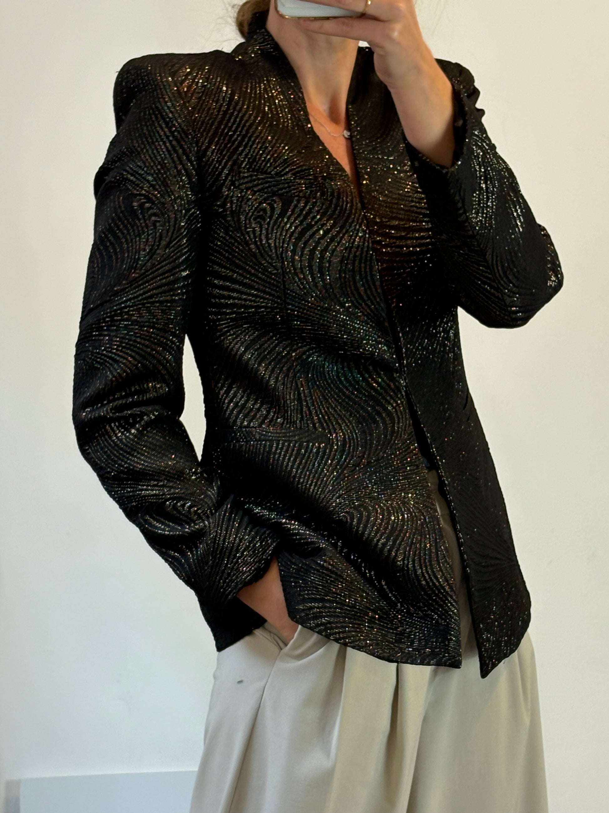 ZARA. Blazer negra hilos dorados