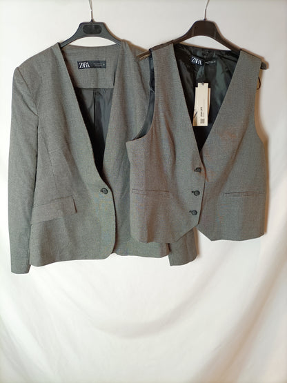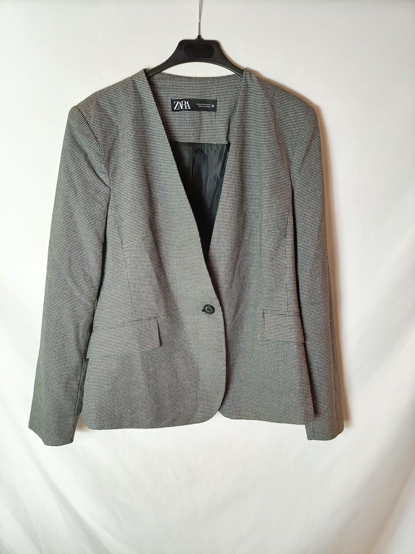 ZARA. Blazer pata de gallo gris y negra. T 42