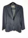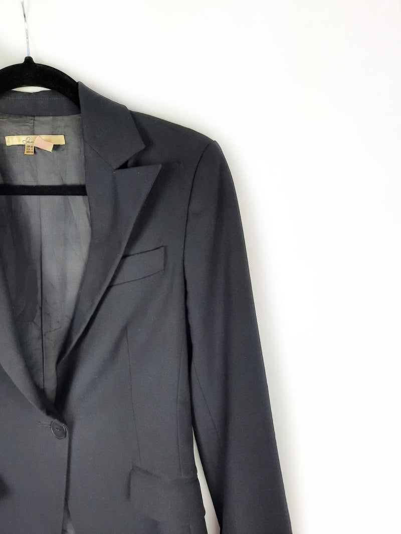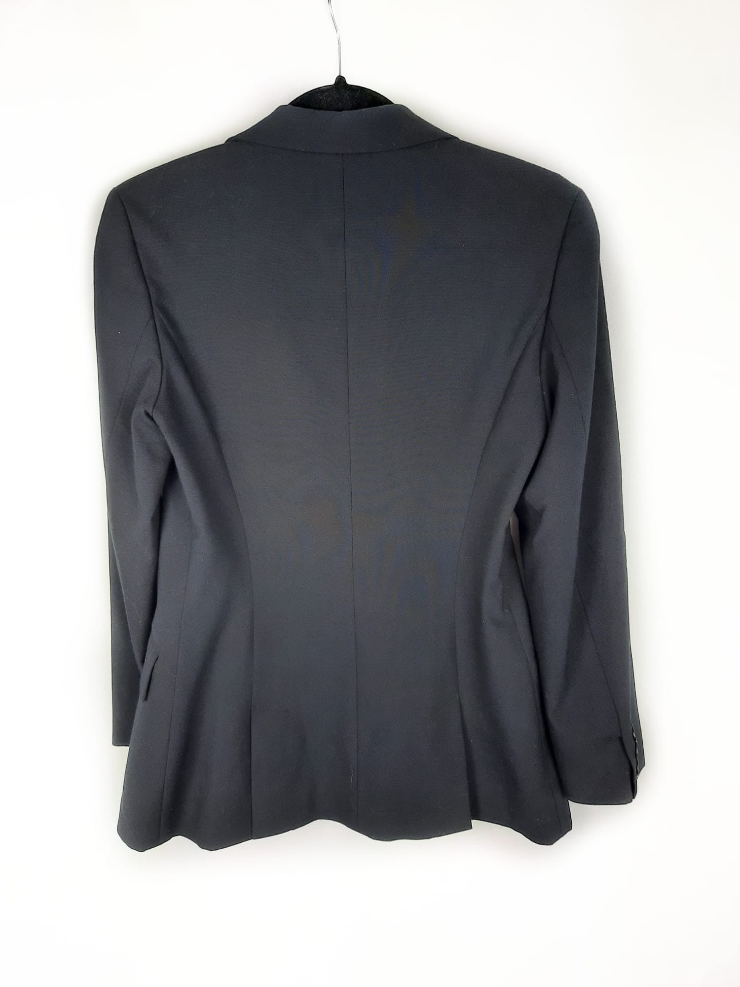 Blazer negra clásica ajustada a la cintura, tiene hombreras. De sisa a sisa 42 cm, largo 67 cm