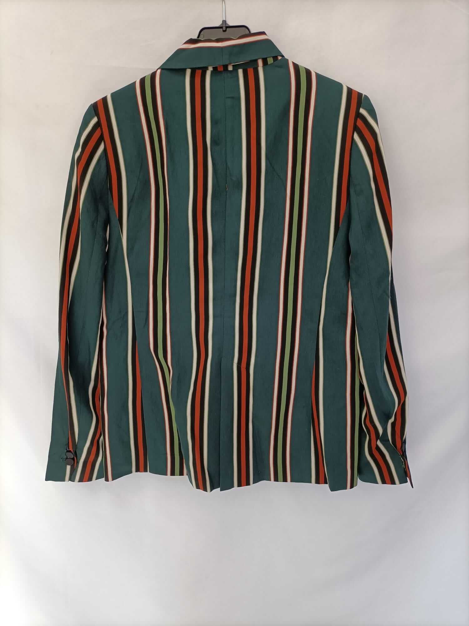 Zara. S. Blazer verde con rayas. Fluida estilo de vestir se abrocha con un botón. No elástico. De sisa a sisa 47 cm largo 67 cm