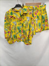 Blusa fluida de manga corta estampada. No elástica. Abotonada. Total look. largo 54 cm