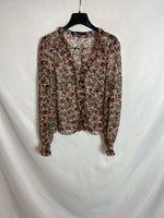 ZARA. Blusa beige flores T.m