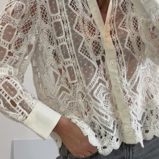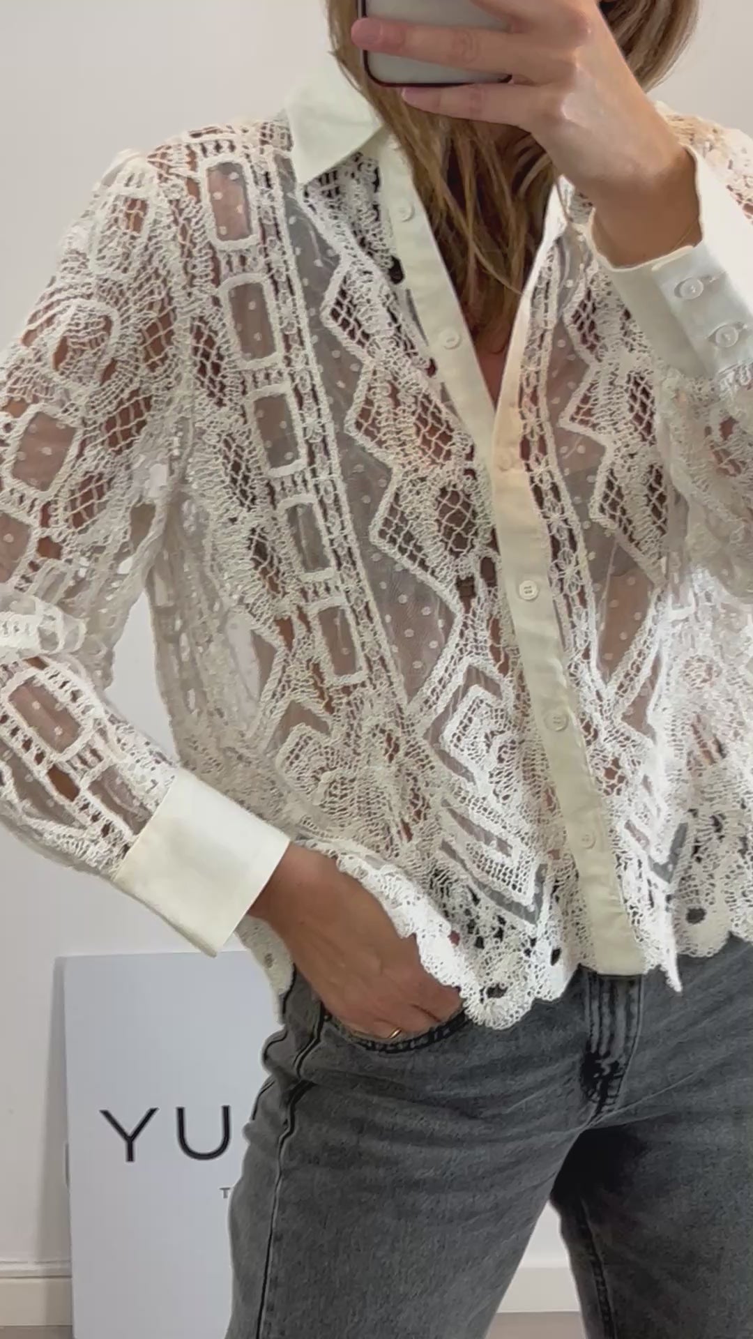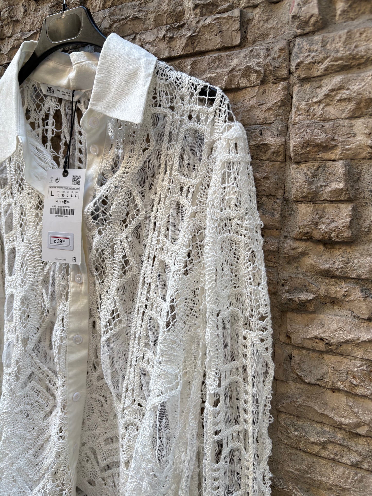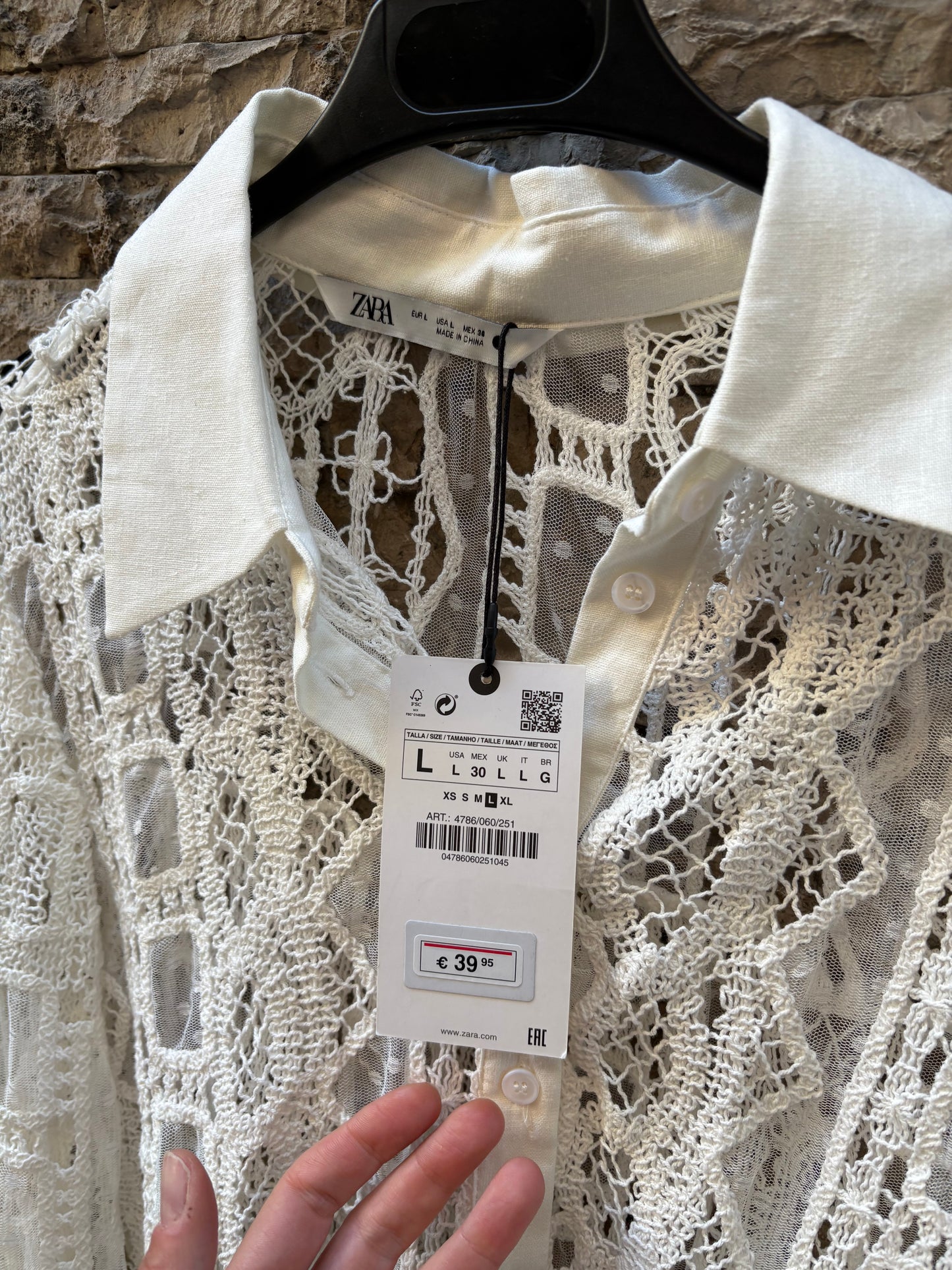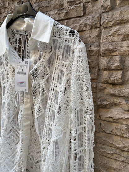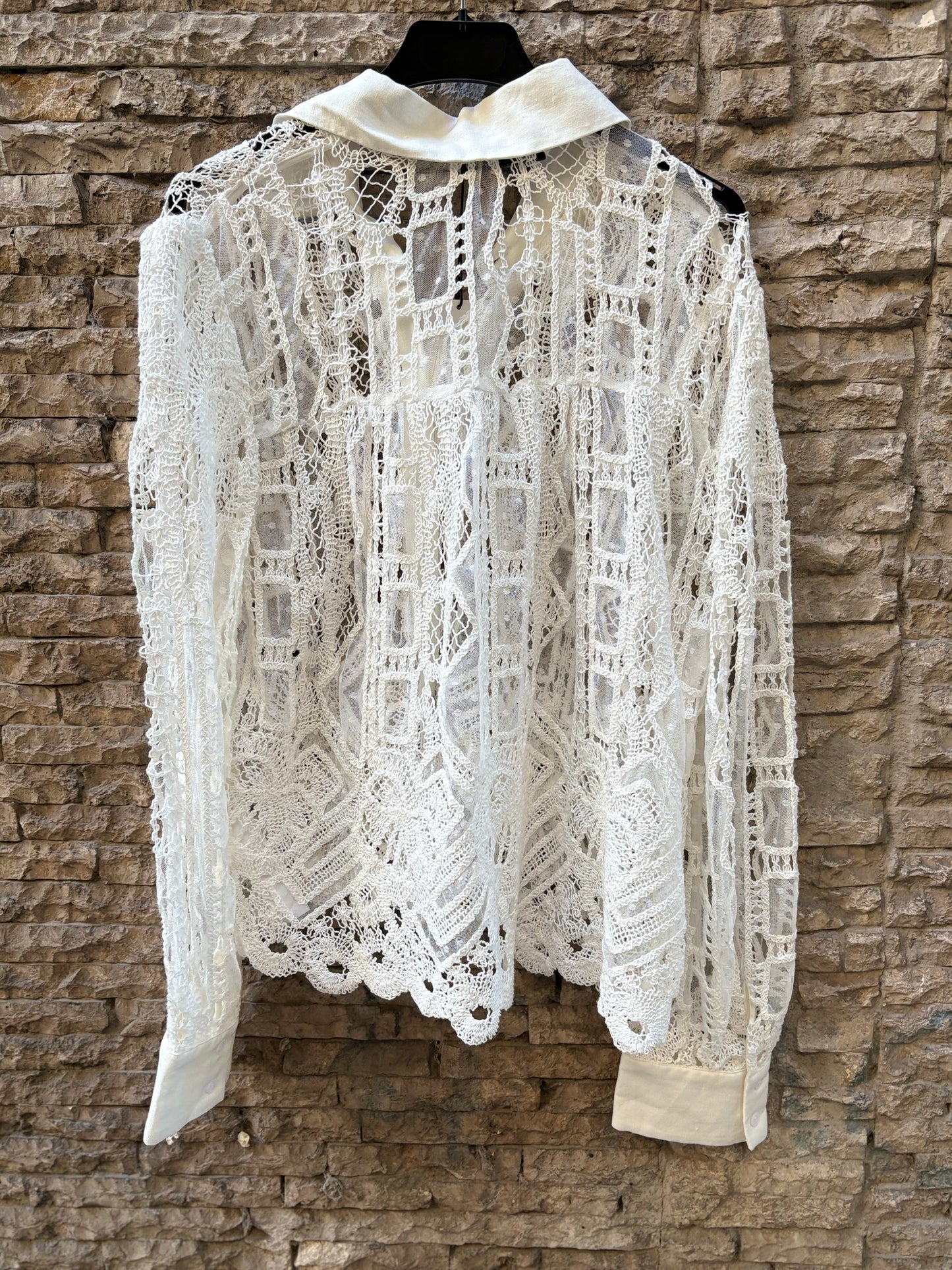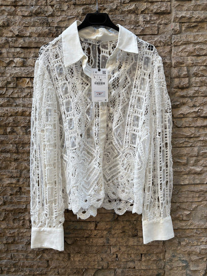 NUEVO CON ETIQUETA. Blusa blanca croché y tul