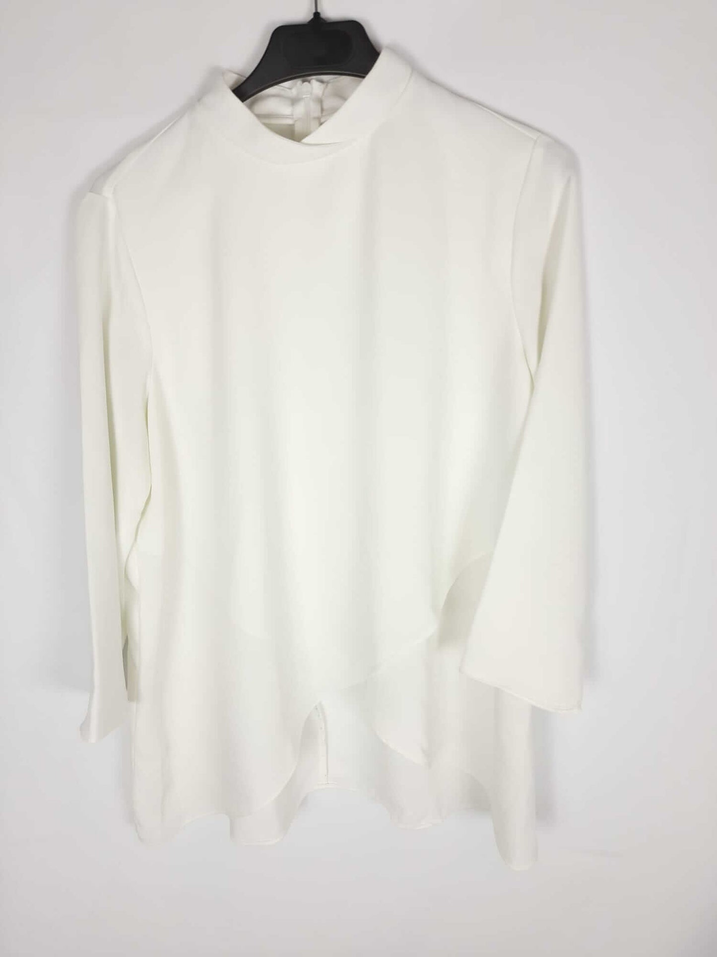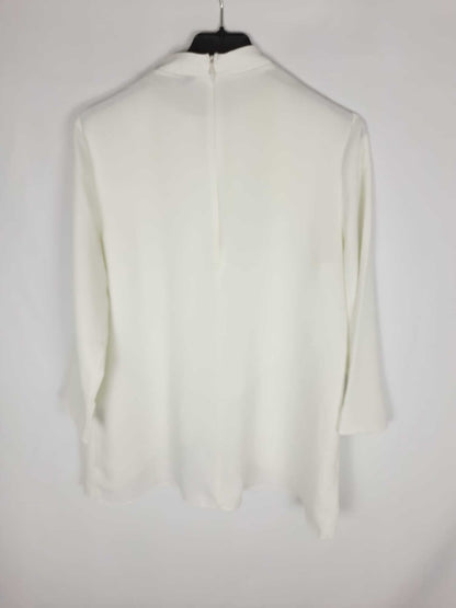 Zara. Blusa blanca fluida cruzada por delante con el cuello perkins. Fluida, no elástica. De sisa a sisa 50 cm largo 72 cm