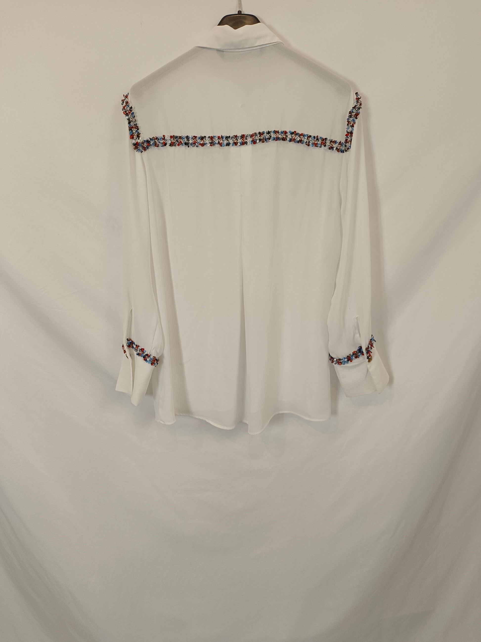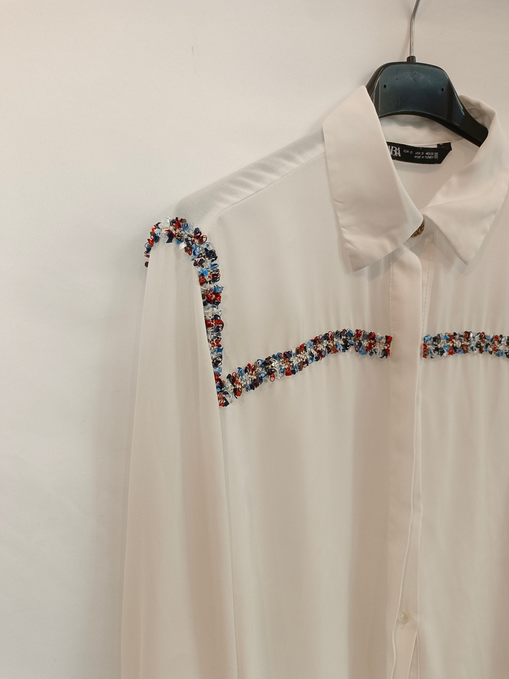 Blusa rosa detalles en tweed. Semitransparente. Espalda 49 cm largo 67 cm