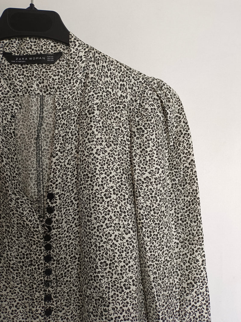 ZARA. Blusa blanca florecitas T.xs