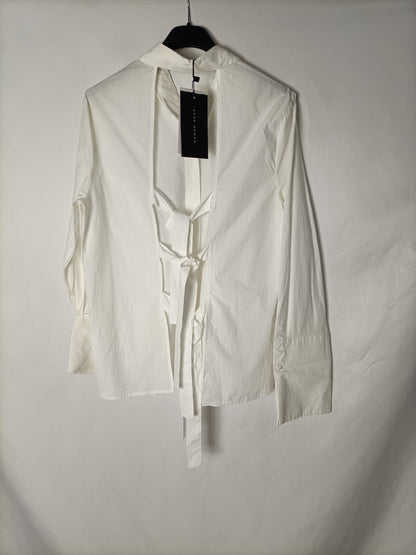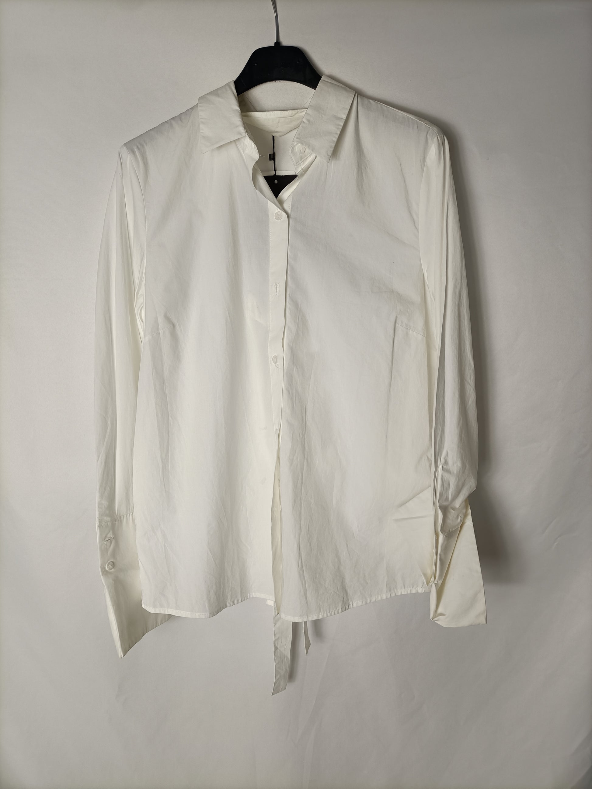 NUEVO CON ETIQUETA. Blusa blanca lazadas espalda